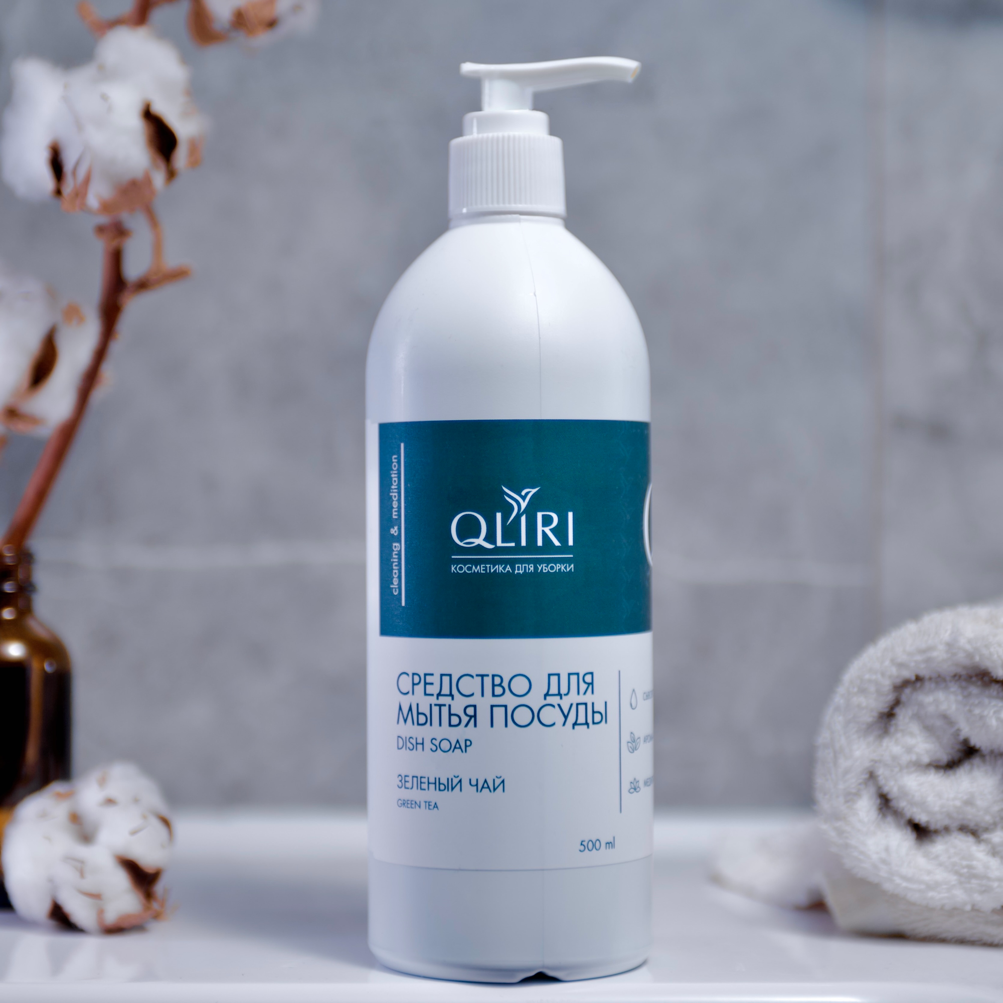 Купить Самое лучшее! НАБОР 2 ШТ! Средство для мытья посуды Зеленый Чай QLIRI 500 мл с дозатором гель