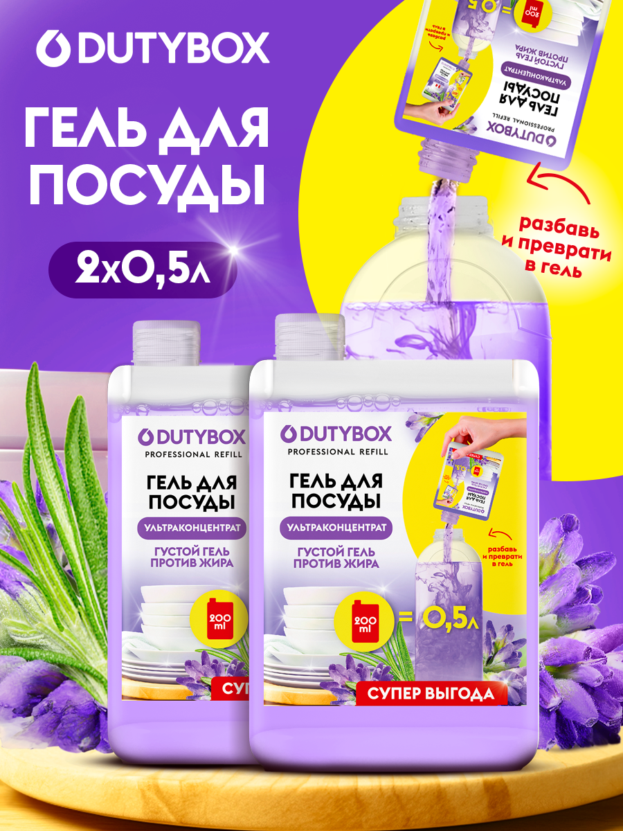 Средство для мытья посуды DUTYBOX Refill Лаванда и розмарин 1 л , гель концентрат интересное:
