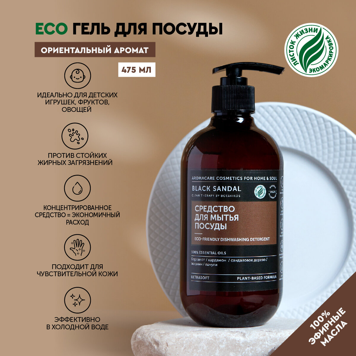 Средство для мытья посуды, фруктов и игрушек BOTAVIKOS "Black Sandal", 475 мл интересное: