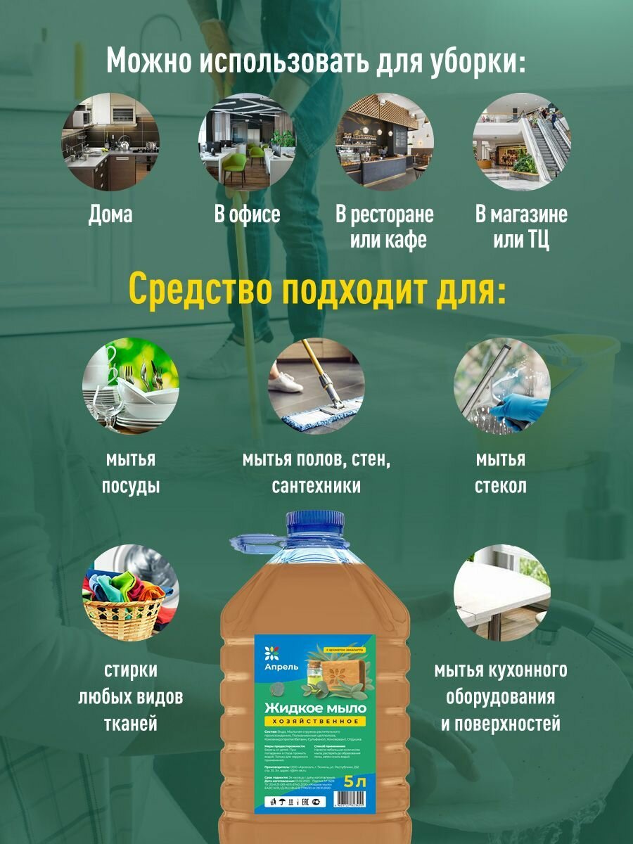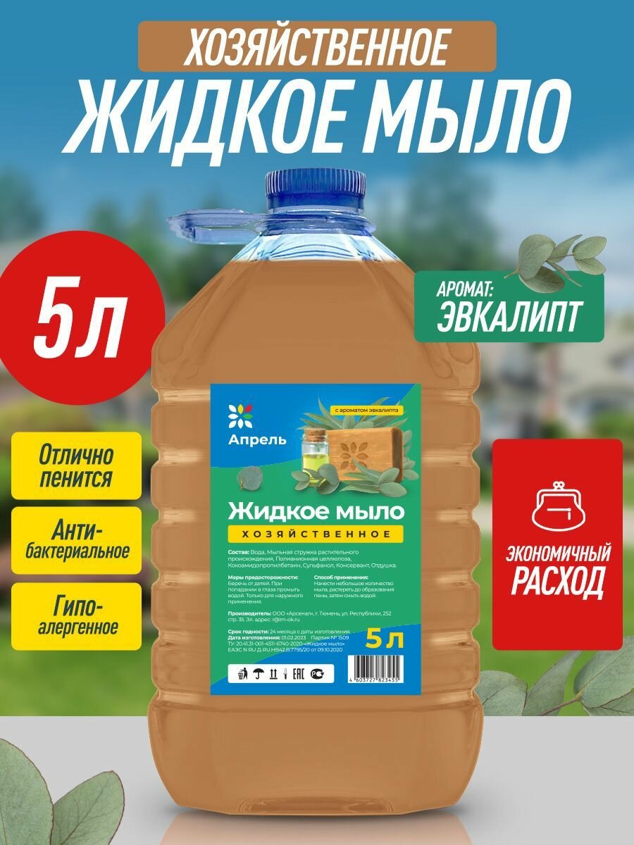 Хозяйственное жидкое мыло Опрель с ароматом эвкалипта, универсальное, 5 л интересное: