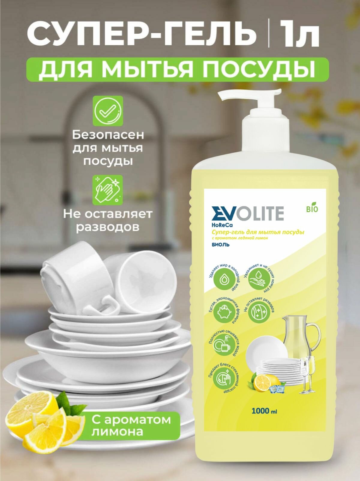 Купить Evolite HoReCa/ Средство для мытья посуды, Биоль, 1л (Ледяной лимон)