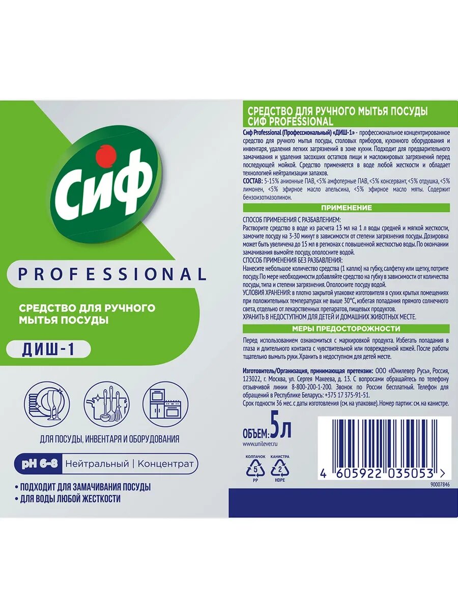 Средство для мытья посуды Cif Professional, концентрат, 5л, без отдушки, Россия интересное: