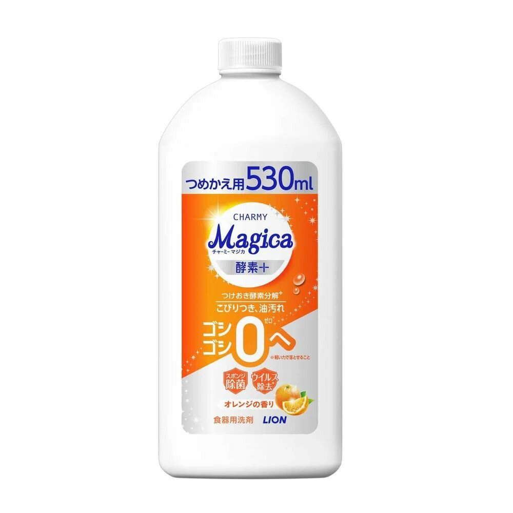 Купить LION Средство для мытья посуды "Charmy Magica+" (с ароматом апельсина / концентрат / от стойких загрязнений) 530 мл, флакон с крышкой