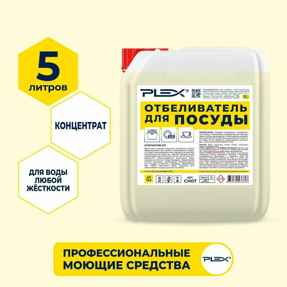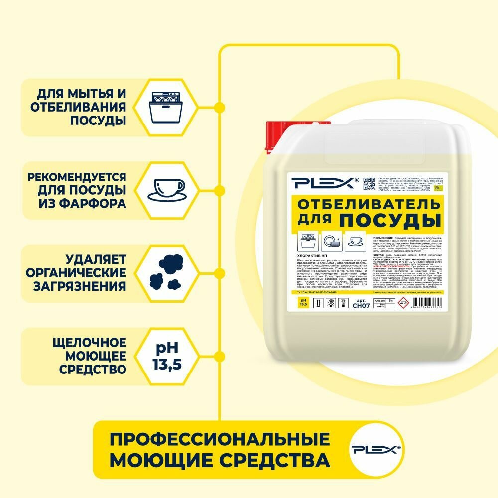 Средство для мытья и отбеливания посуды с активным хлором PLEX 5л интересное:
