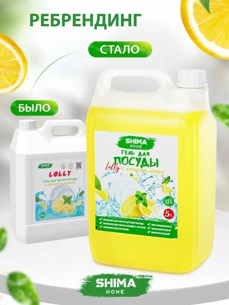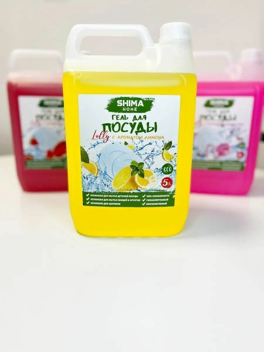 SHIMA LOLLY Средство для мытья посуды 5 литров Свежий лимон, гель для мытья посуды интересное: