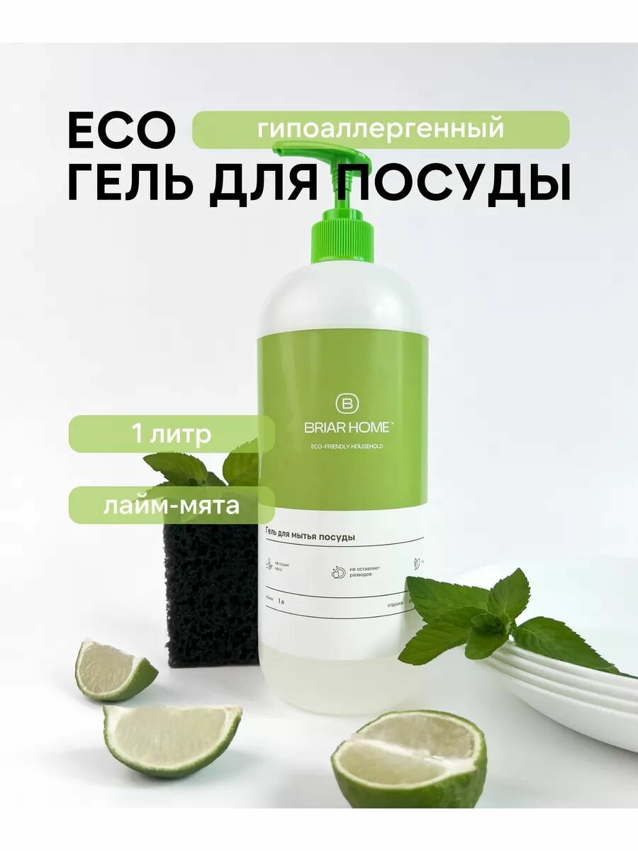 Средство для мытья посуды, гипоаллергенное, с дозатором, гель, 1л, BRIARHOME интересное: