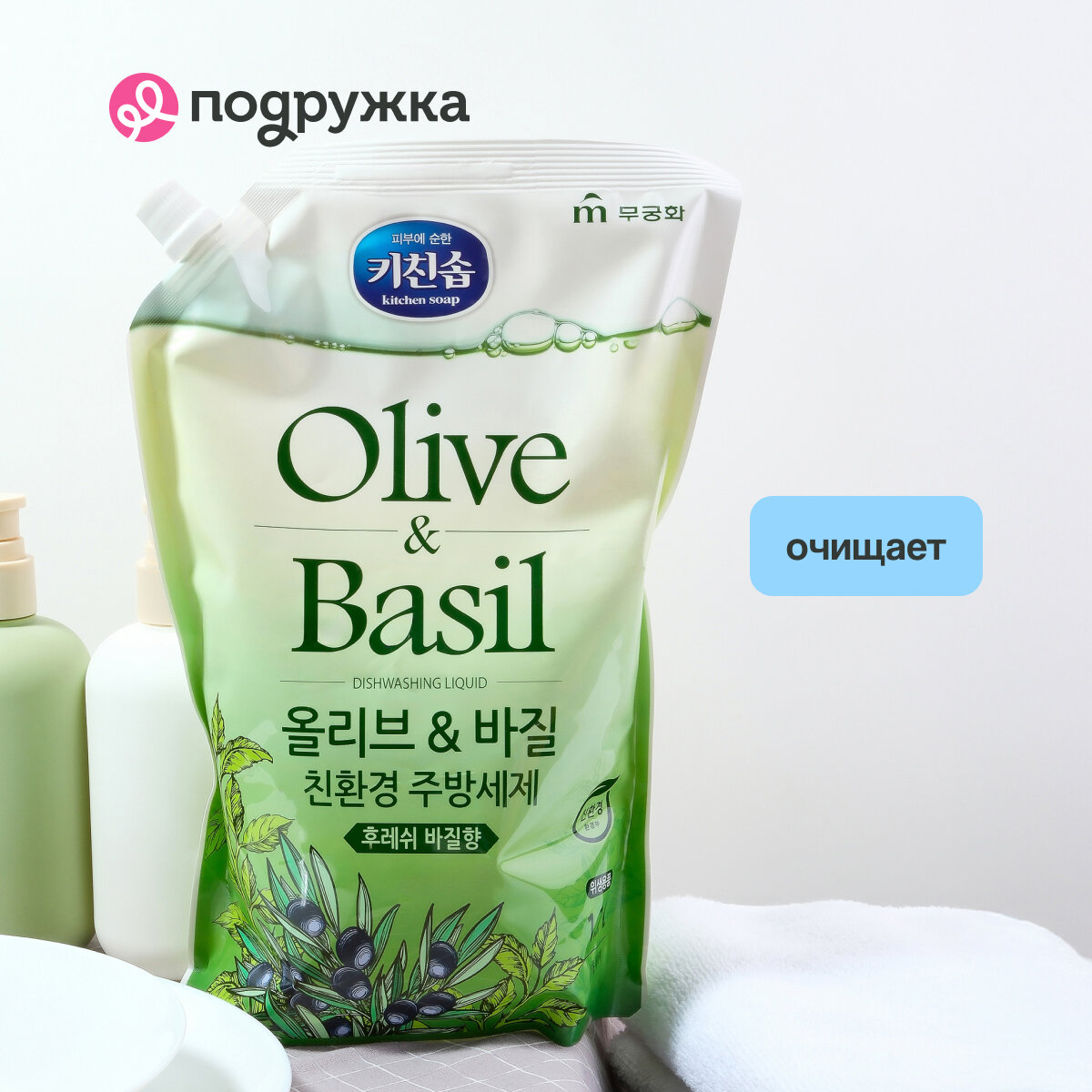 Средство для мытья посуды MUKUNGHWA Olive & basil 1,2 л интересное:
