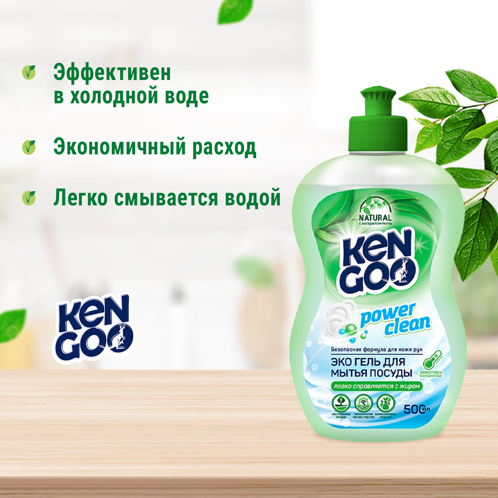 Средство для мытья посуды Kengoo Power Clean с экстрактом пихты, гель для овощей и фруктов, эко, 500 мл интересное: