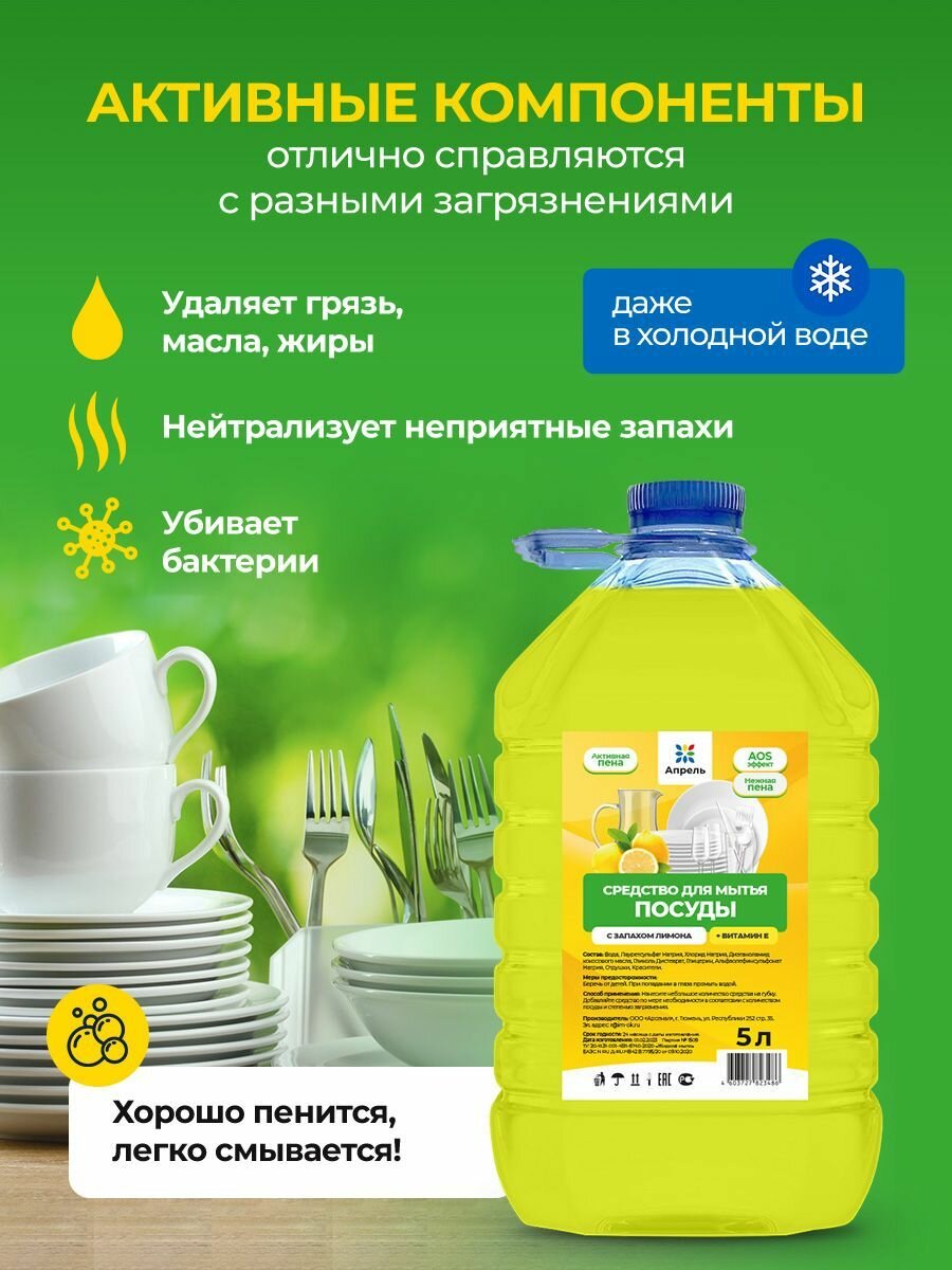 Средство для мытья посуды Опрель с запахом лимона + витамин Е, 5 л интересное: