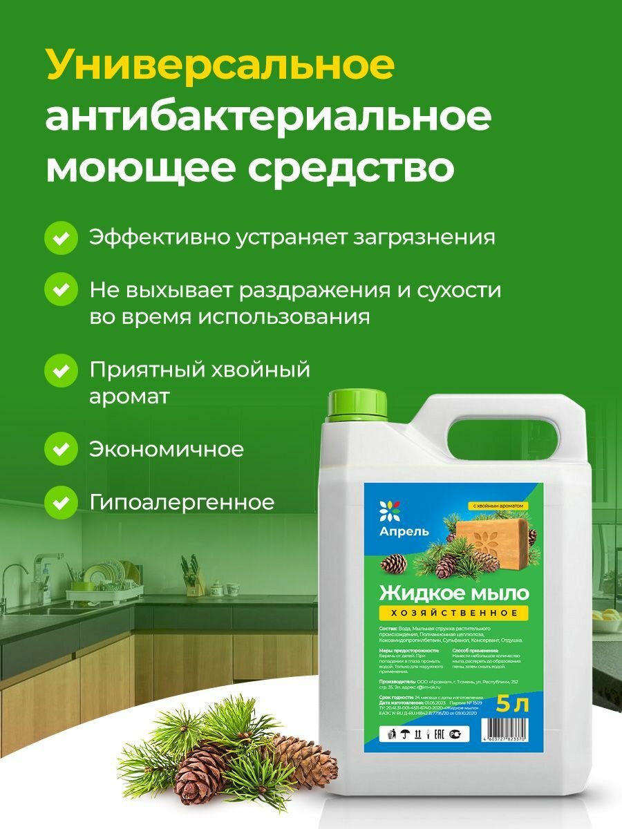Мыло жидкое хозяйственное Опрель, с хвойным ароматом, гипоалергенное, 5 л интересное: