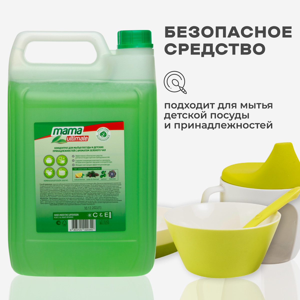 Средство для мытья посуды и детских принадлежностей концентрат Mama Ultimate, зеленый чай, 5 л интересное: