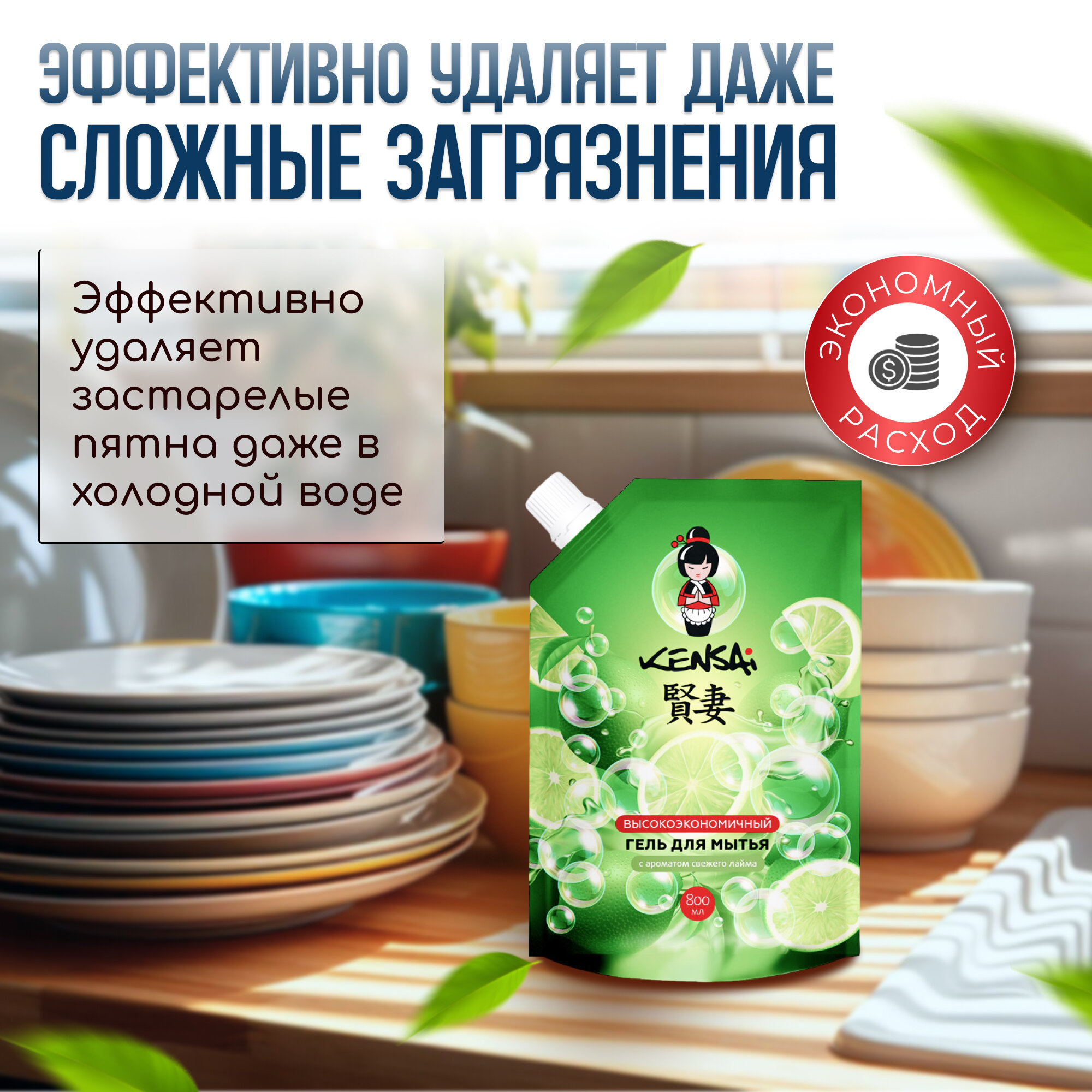 Гель для мытья посуды Kensai с ароматом японского лайма, сменный блок, 800 мл * 2 шт интересное: