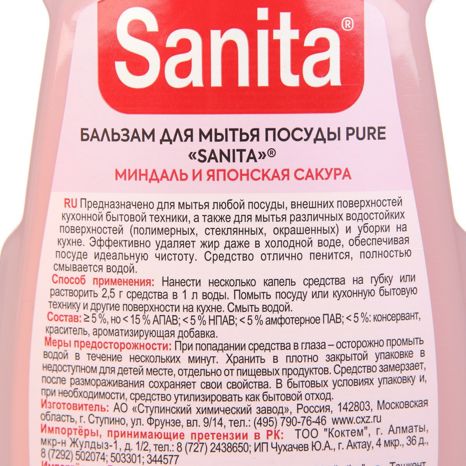 Купить Sanita Бальзам для мытья посуды Pure (Миндаль/Японская сакура) Крышка 450г