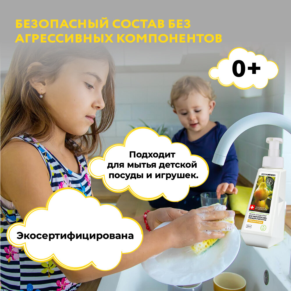 Пенка-концентрат для мытья посуды, овощей и фруктов DzenClean "Спелая груша", 920 мл. интересное: