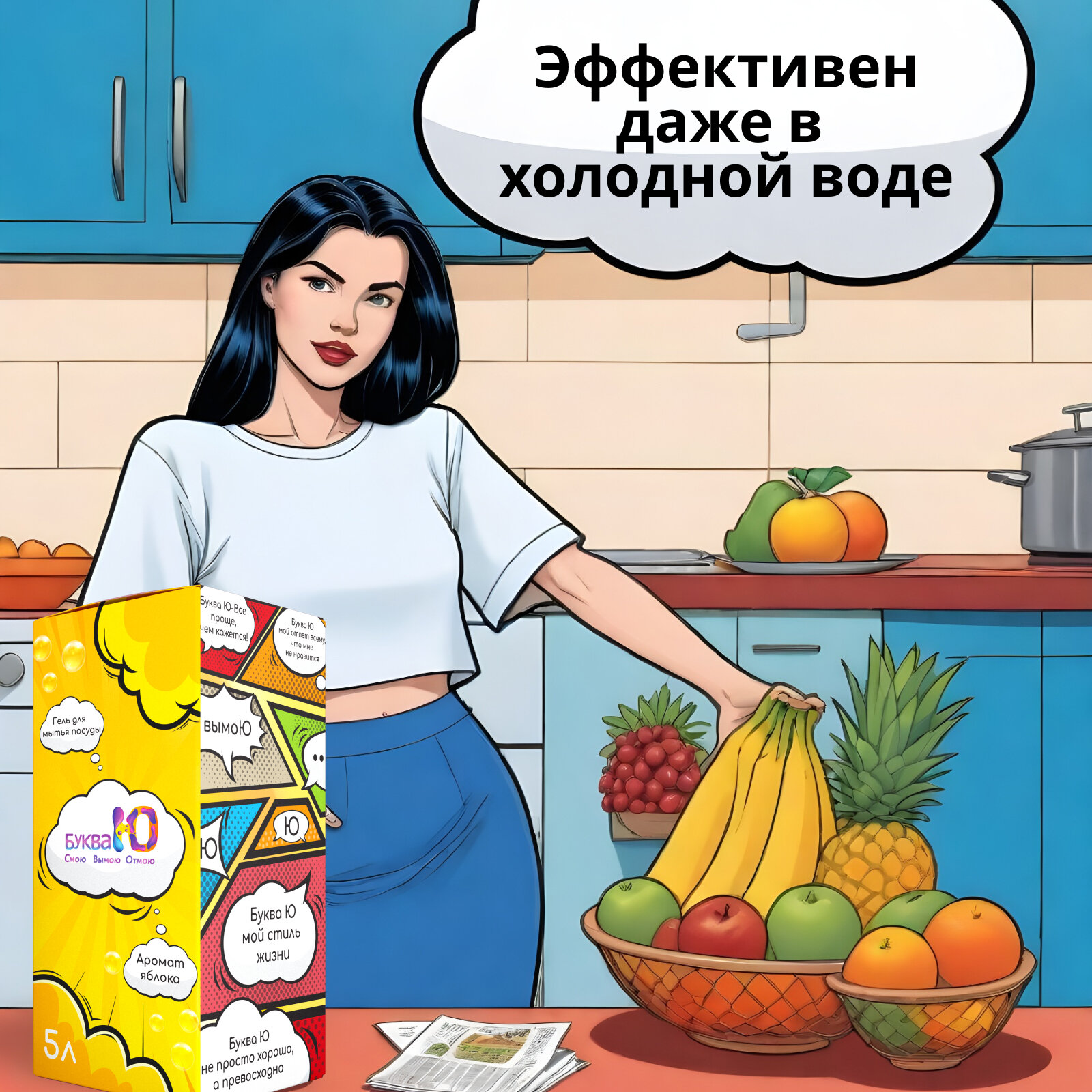 Буква Ю Гель для мытья посуды с ароматом яблока, 5 л интересное: