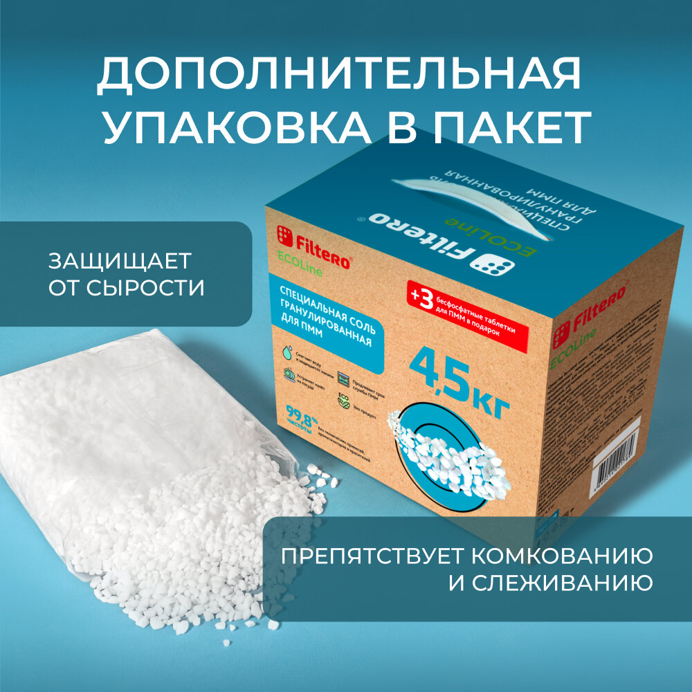 Соль для посудомоечных машин ПММ специальная гранулированная 4,5 кг+3 табл. Filtero ECOLine интересное: