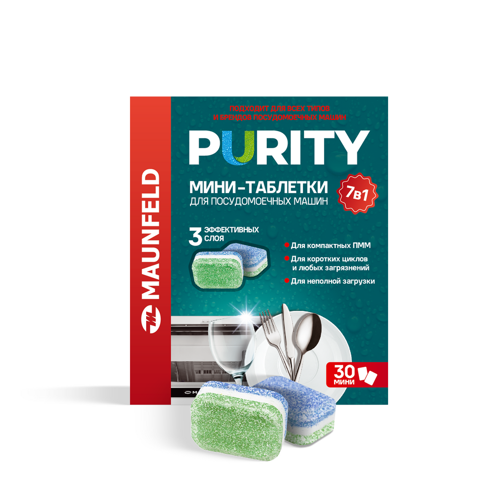 Мини-таблетки для посудомоечных машин MAUNFELD Purity all in 1 MDM30ST (30 шт. в упаковке) интересное: