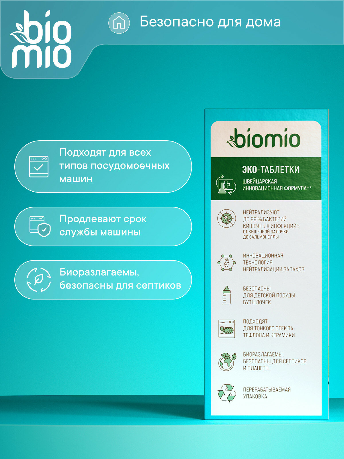 Купить BioMio Таблетки для посудомоечной машины. Эвкалипт, 16 г/25 шт