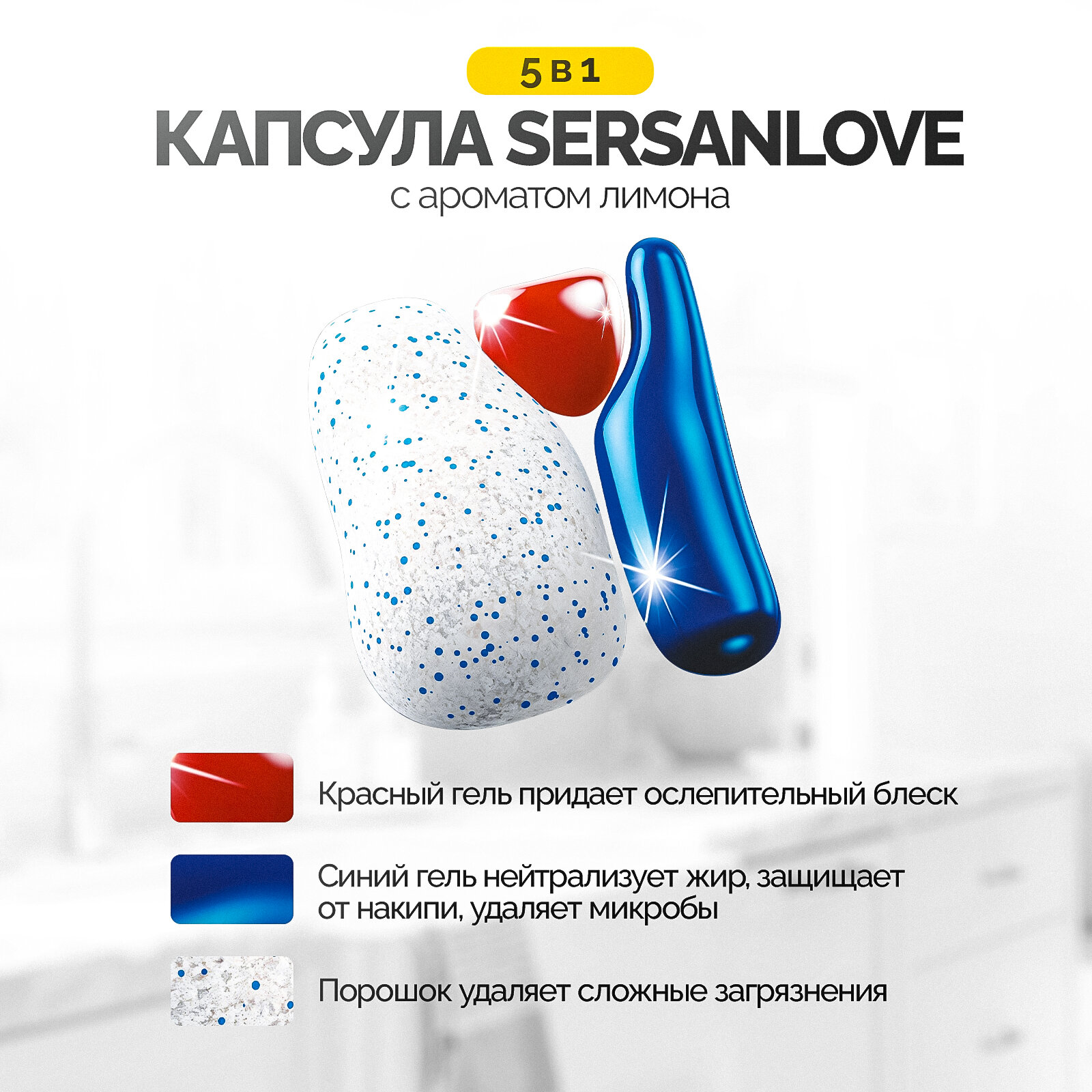 Капсулы для посудомоечной машины SersanLove 5 в 1, таблетки для мытья посуды без фосфатов, 50 штук интересное: