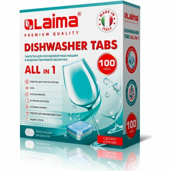 Таблетки для посудомоечной машины / посудомойки / средство для посуды 100 штук Laima Premium Quality All in 1, растворимая оболочка, Италия, 607609