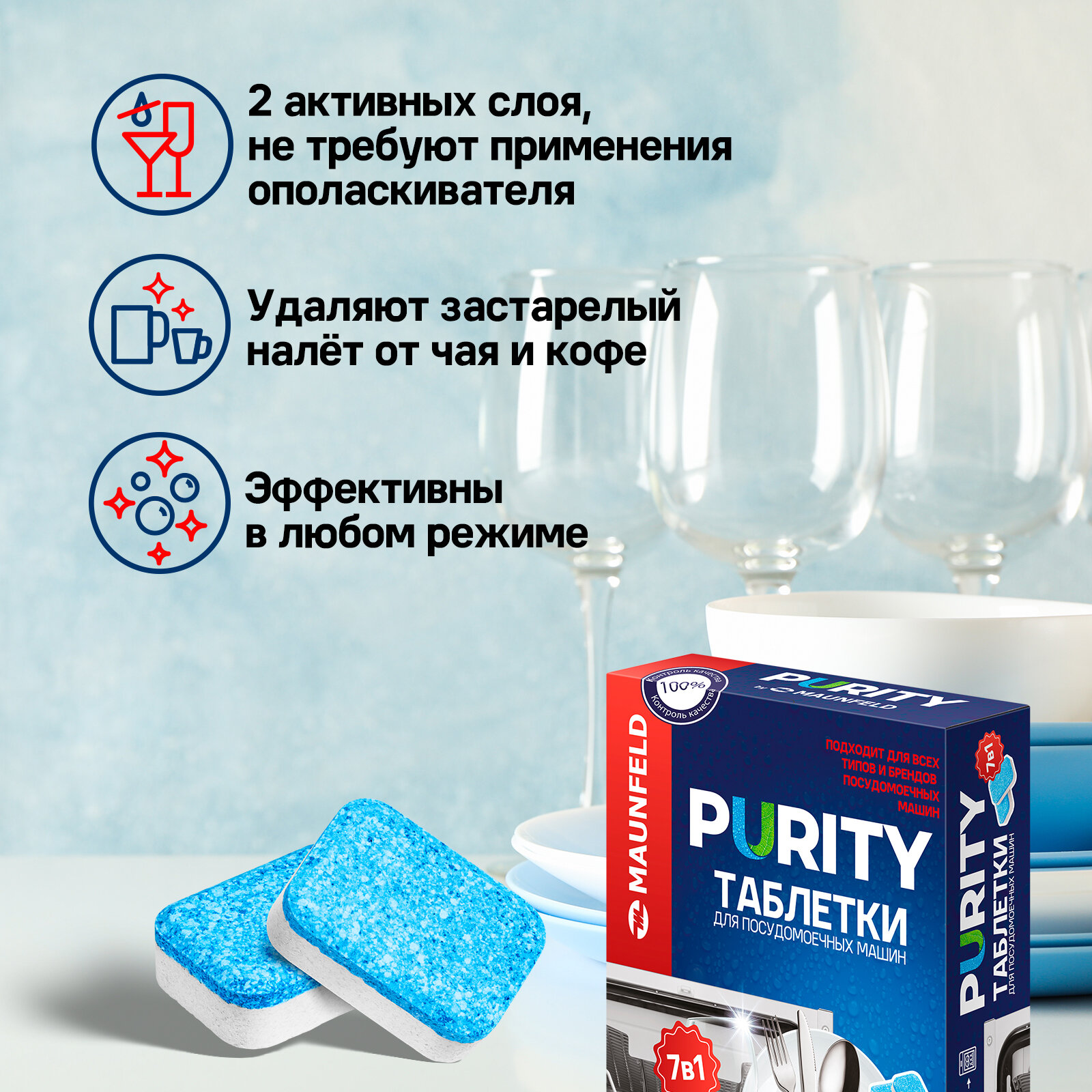 Таблетки для посудомоечных машин MAUNFELD Purity all in 1 MDT100PH (100 шт.)