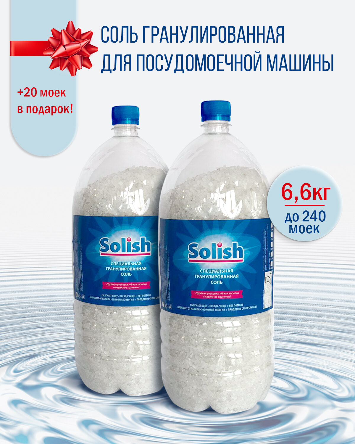 Купить Соль для посудомоечной машины Solish, 6.6кг (3.3кг х 2уп.) / Соль гранулированная для посудомоечных машин / Средство для пмм