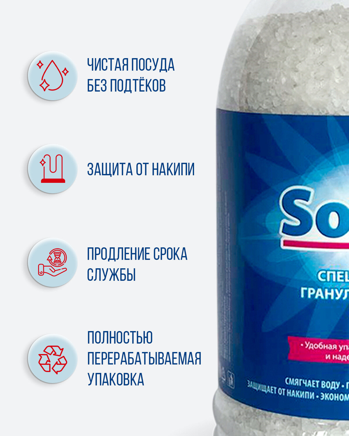 Соль для посудомоечной машины Solish, 1.1 кг / Соль гранулированная для посудомоечных машин / Средство для пмм
