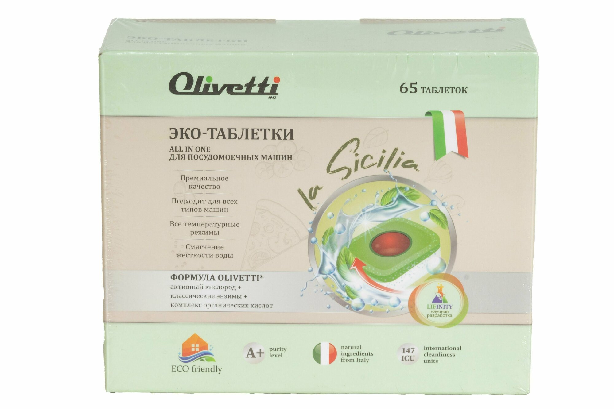 Купить Olivetti Эко-таблетки 3в1 для посудомоечных машин 65 штук / ПРЕМИУМ качество / бесфосфатные, без пятен и разводов