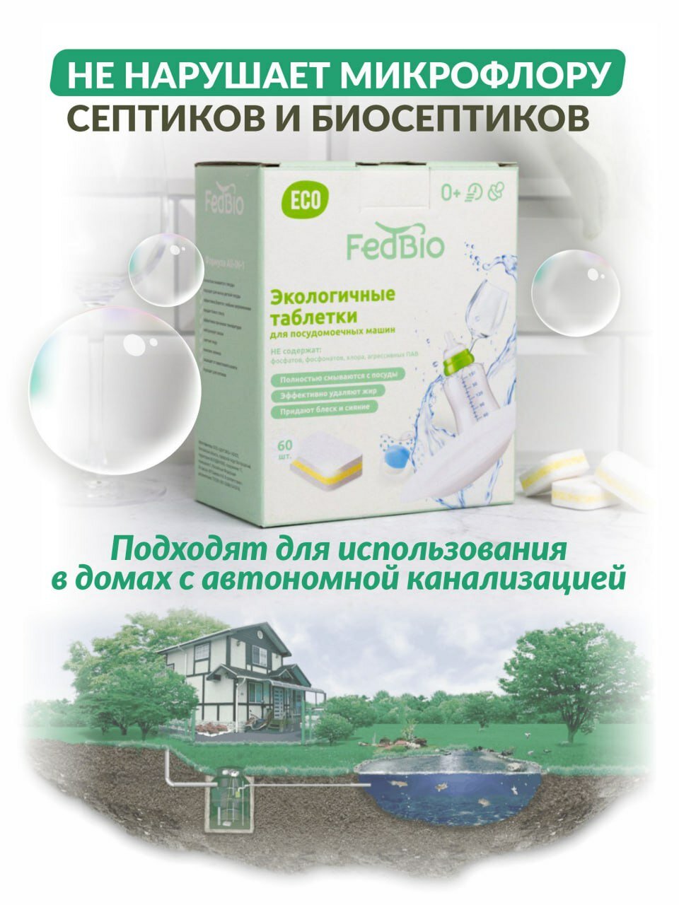 Экологичные таблетки для посудомоечной машины FedBio 60 шт интересное: