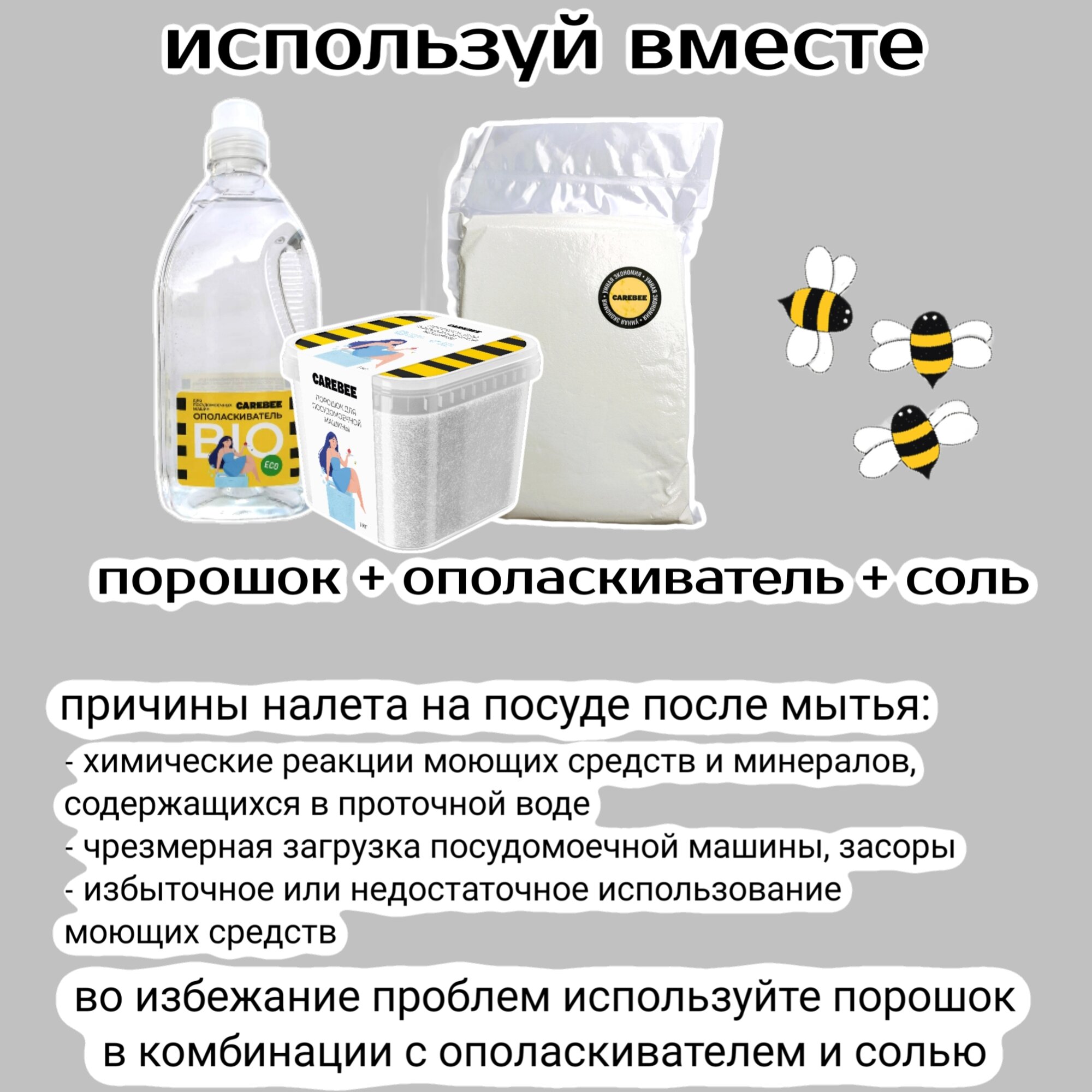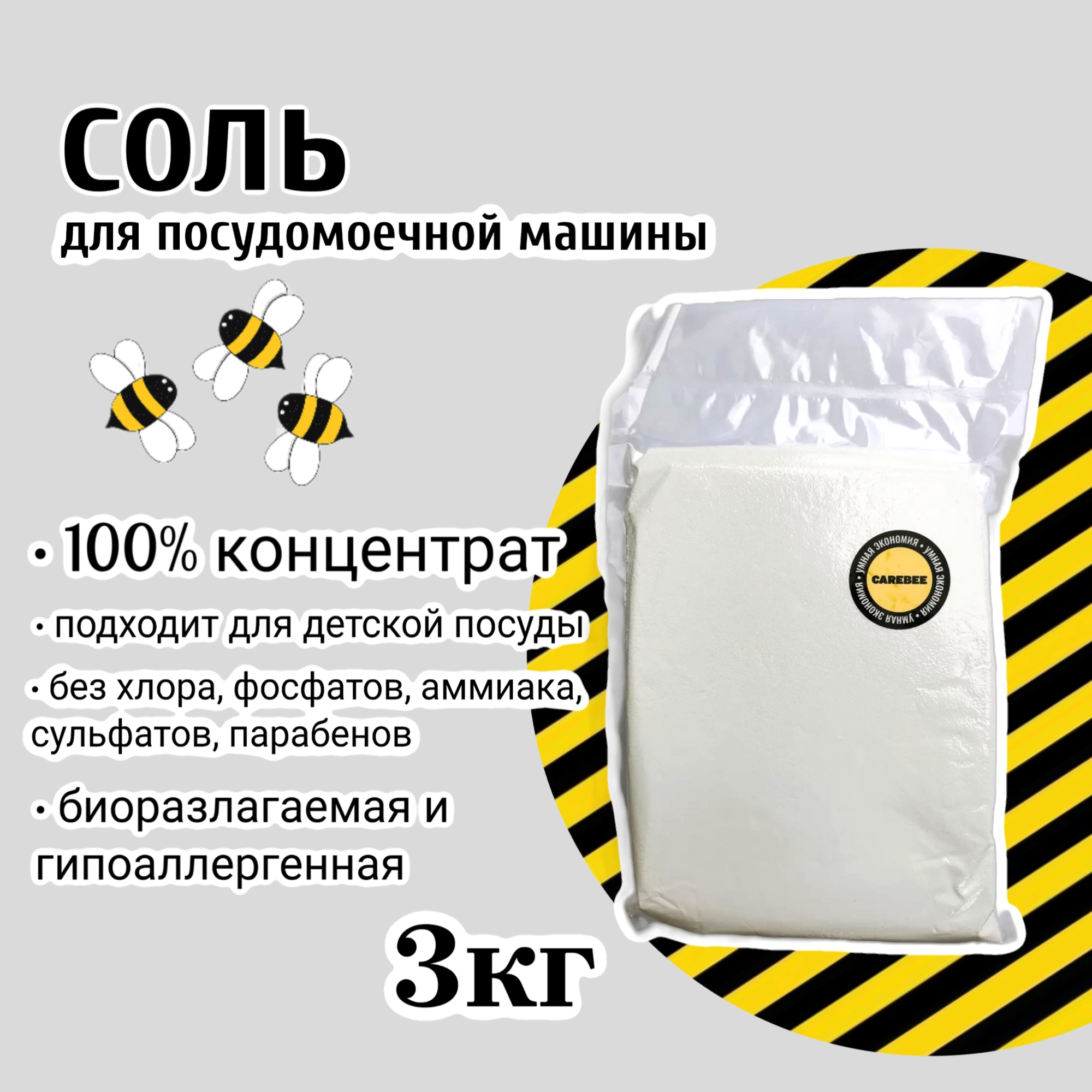 Соль для посудомоечных машин /ПММ CAREBEE пакет 3 кг 100% концентрат интересное: