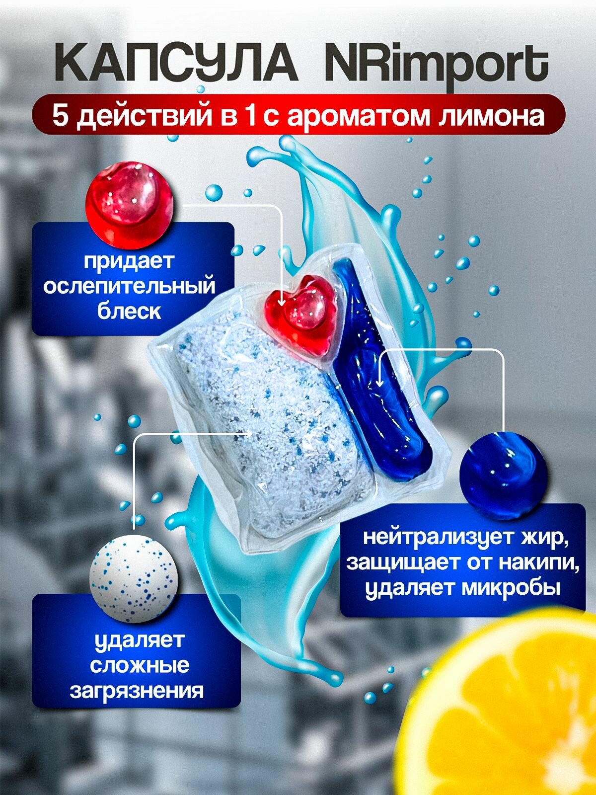 Капсулы для посудомоечной машины. Капсулы NRimport 44 шт, 5в1 Лимон. интересное: