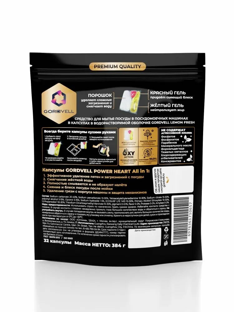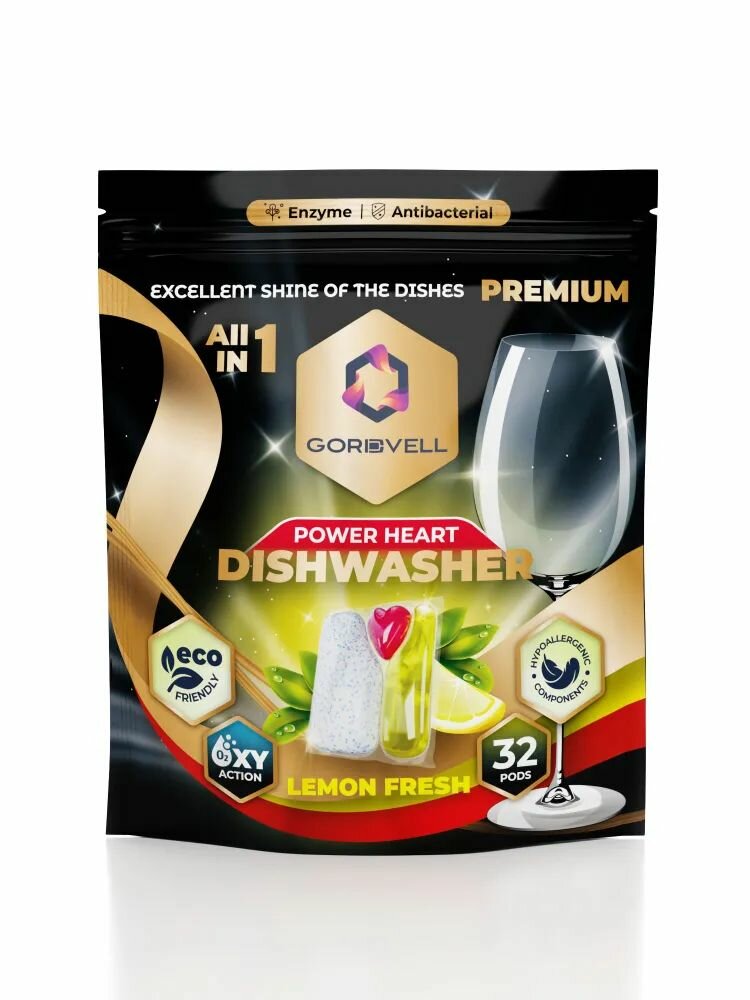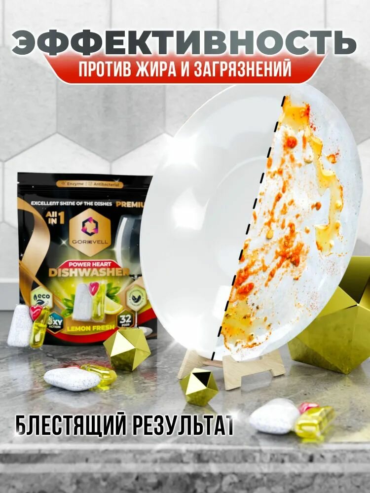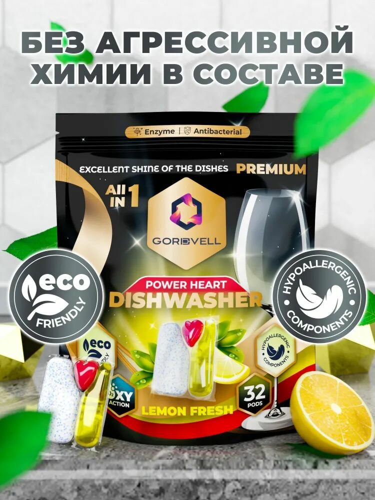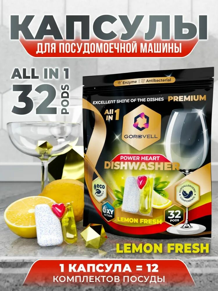 Капсулы таблетки для посудомоечной машины Gordvell Eco All in One Lemon Fresh 32 шт, экологичное средство для мытья посуды в ПММ интересное: