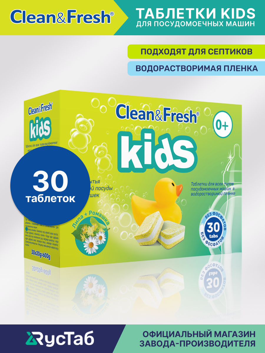 Купить Таблетки для посудомоечной машины "Clean&Fresh" Kids в растворимой плёнке, 30 шт.
