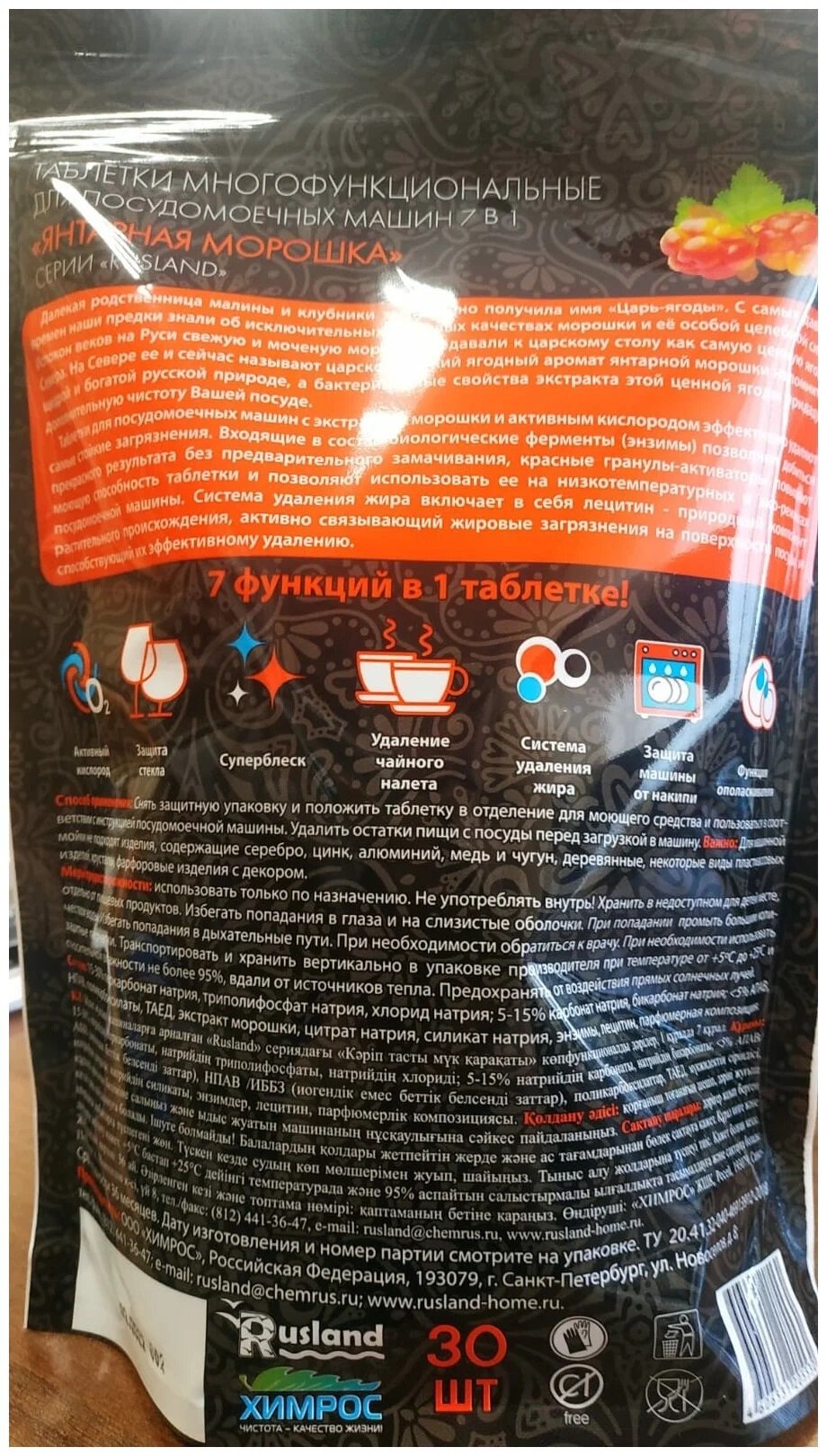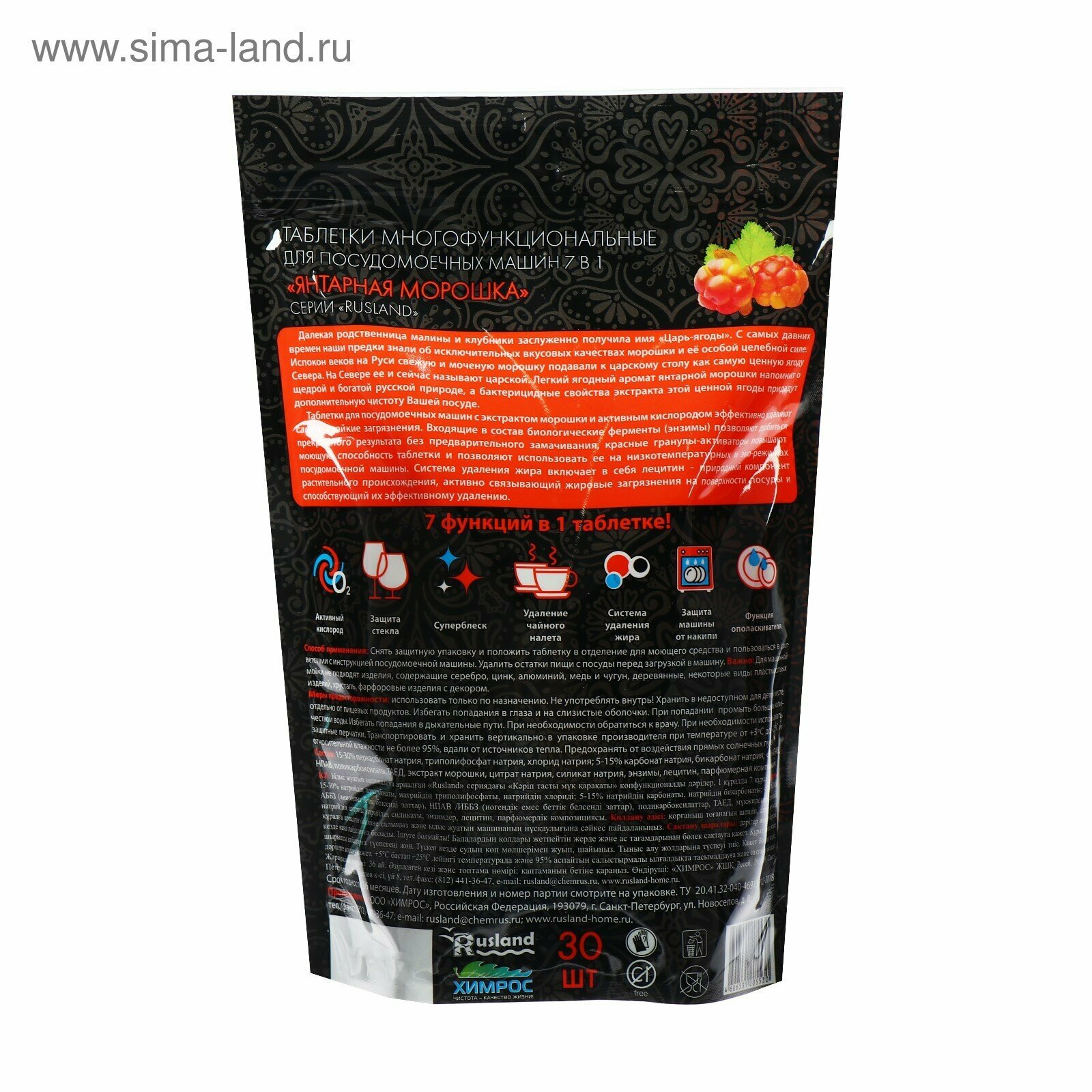 Rusland Таблетки многофункциональные для посудомоечных машин 7 в 1 "Янтарная морошка" 30 шт. интересное: