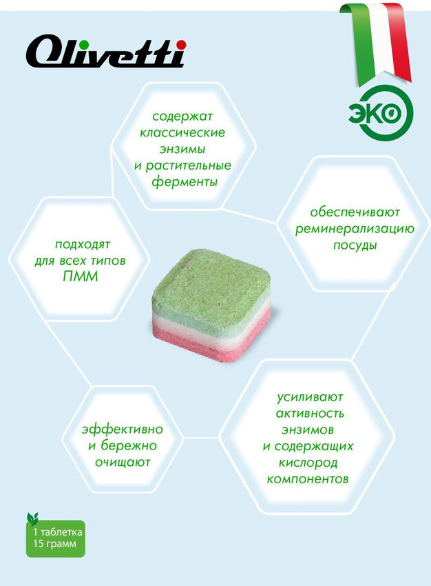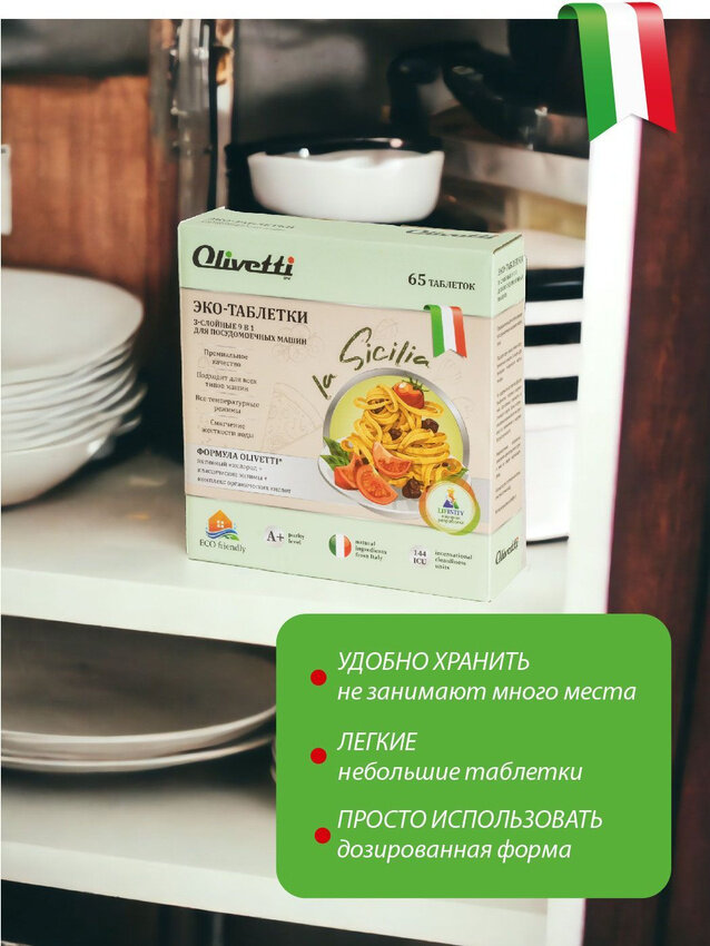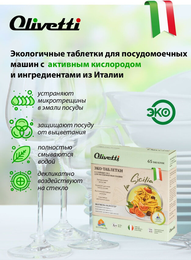 Olivetti Эко-таблетки 3-слойные 9в1 для посудомоечных машин 65 штук / ПРЕМИУМ качество / без пятен и разводов интересное: