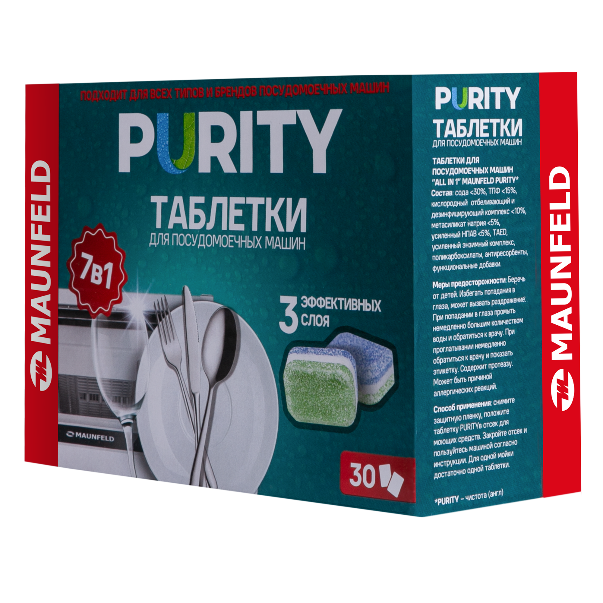 Купить Таблетки для посудомоечных машин MAUNFELD Purity all in 1 MDT30ST (30 шт. в упаковке)