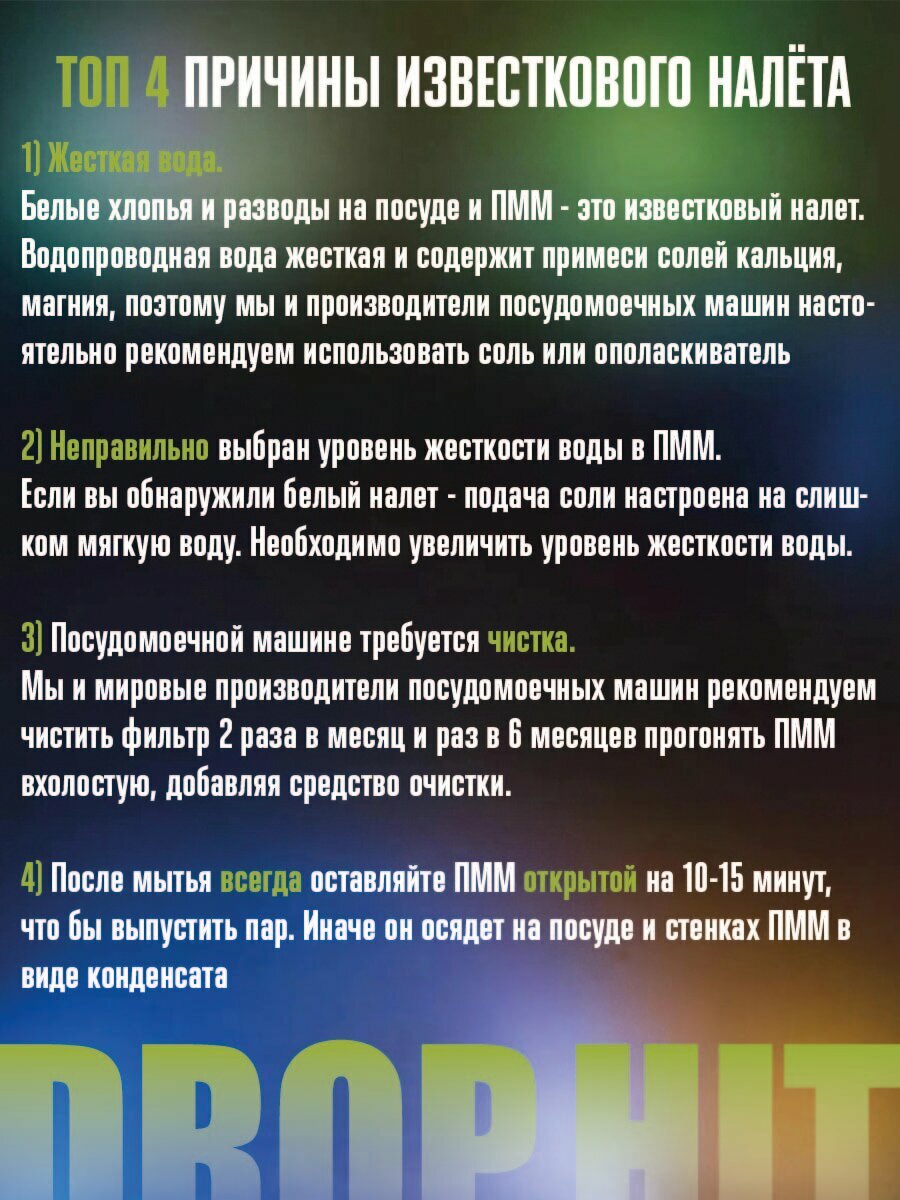 Таблетки для посудомоечной машины DROP-HIT, 100 шт, бесфосфатные и экологичные интересное: