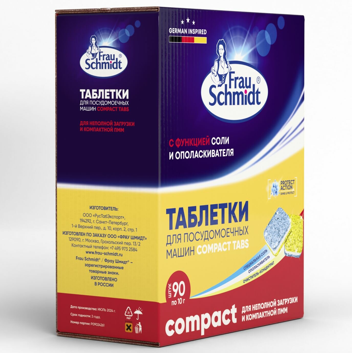 Мини Таблетки для мытья посуды в компактной посудомоечной машине Frau Schmidt Компакт "Все в 1" 90 таб. (Compact) интересное:
