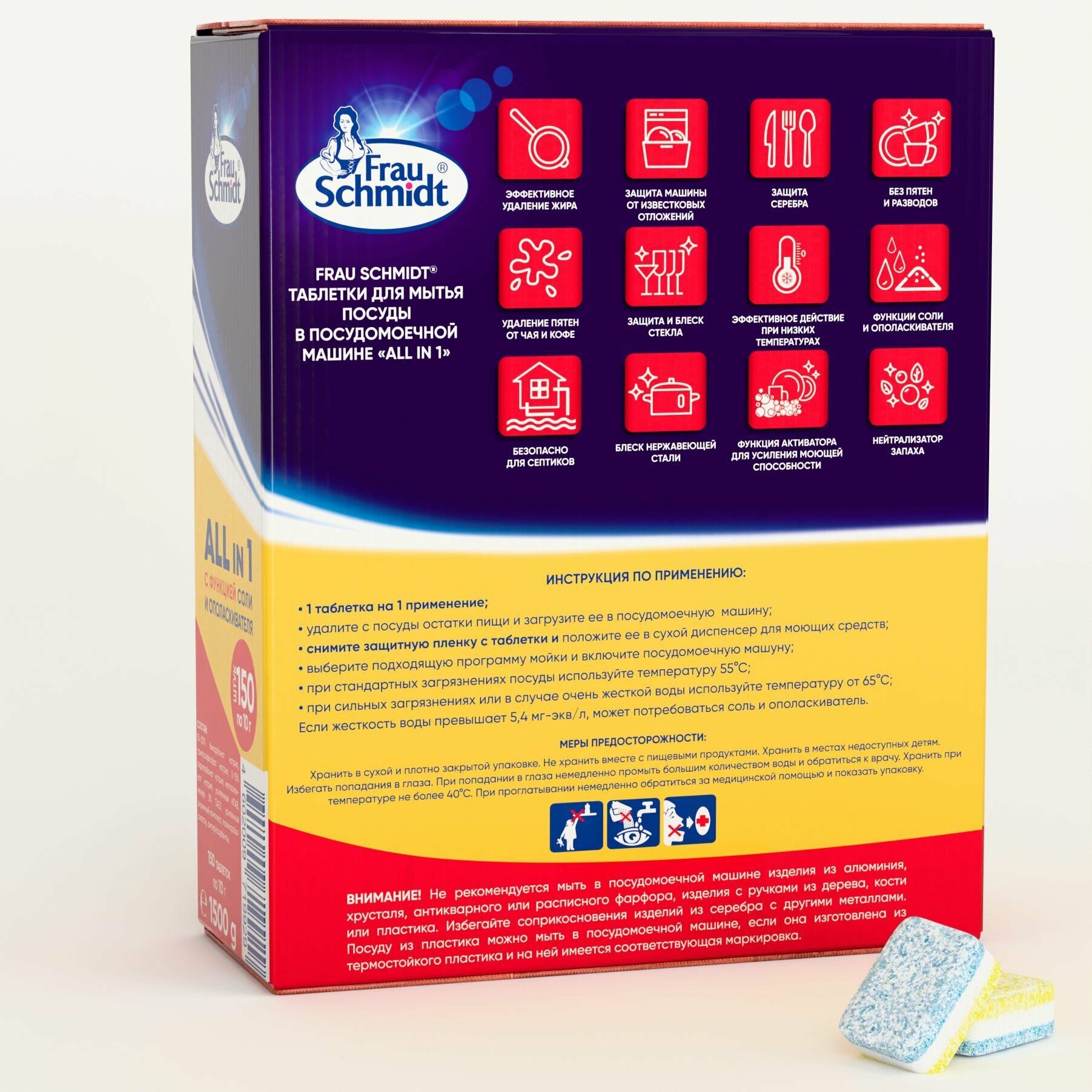 Мини Таблетки для мытья посуды в компактной посудомоечной машине Frau Schmidt Компакт "Все в 1" 150 таб. (Compact) интересное: