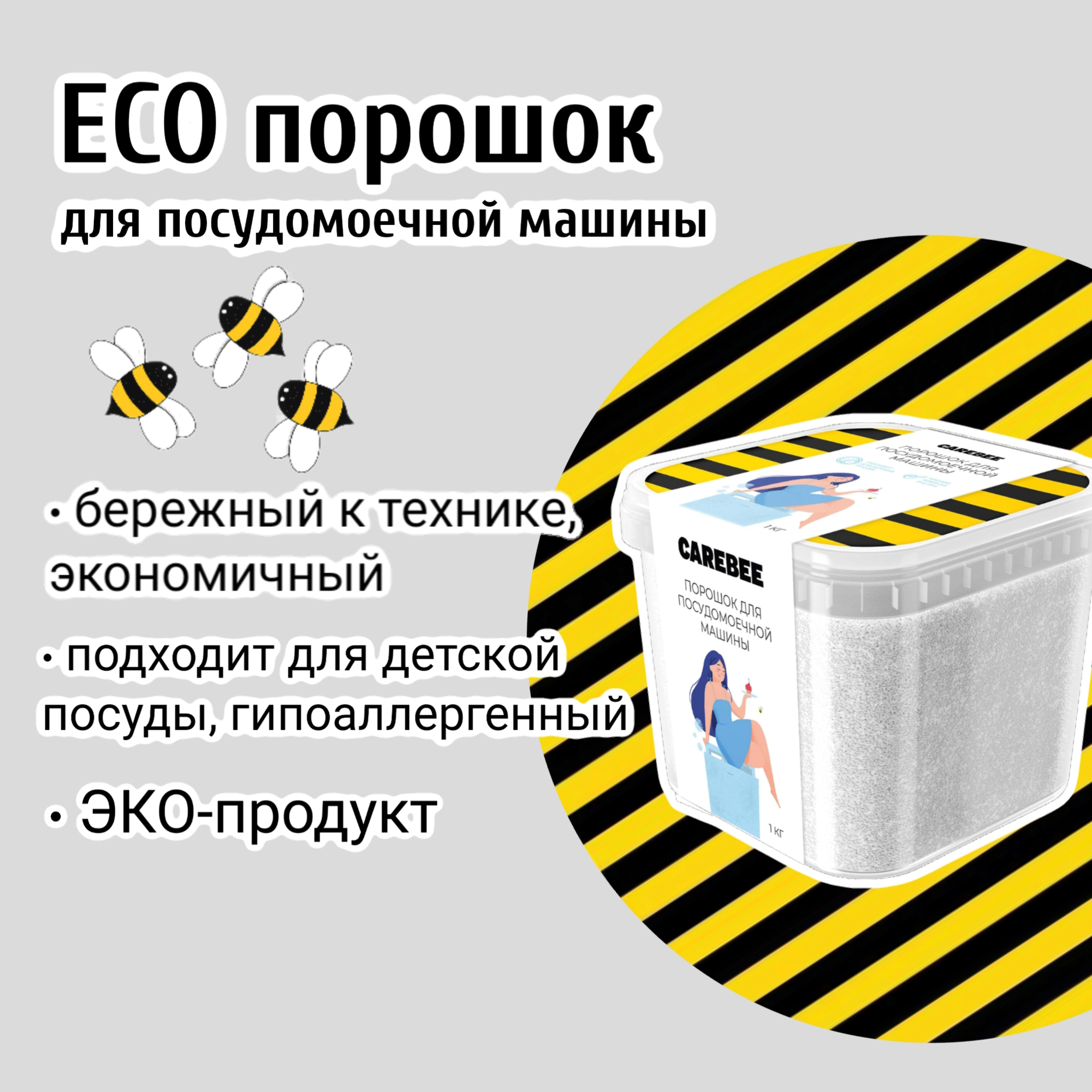 ЭКО Порошок для посудомоечных машин Carebee комплект из 2-х контейнеров 1 кг + 1 кг