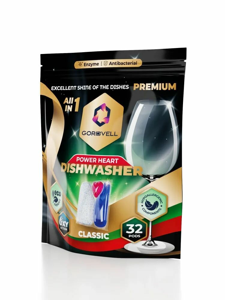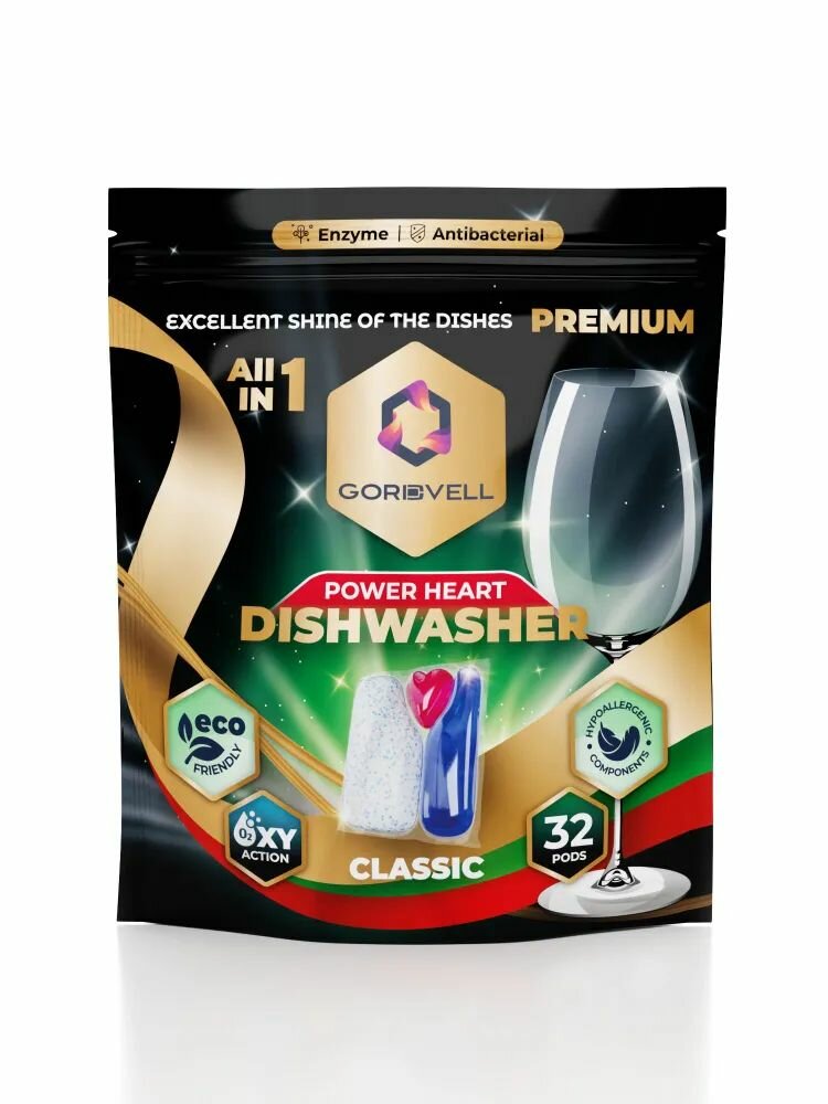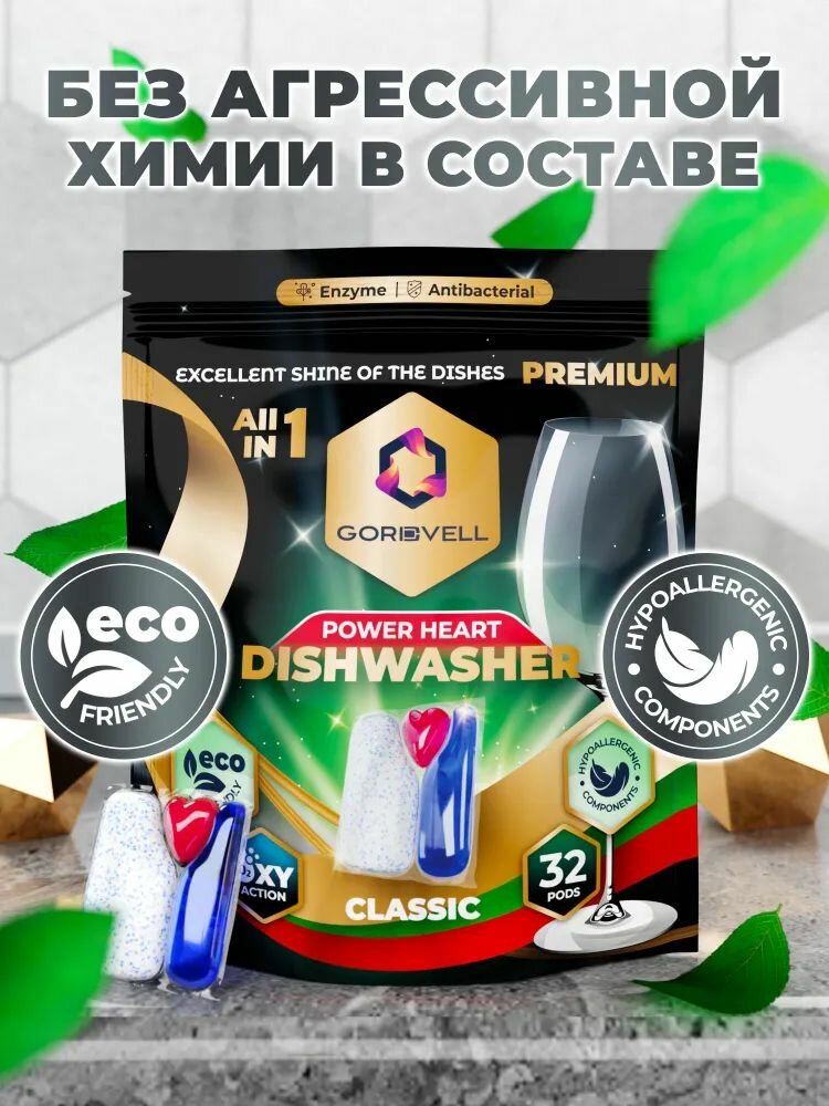 Купить Капсулы таблетки для посудомоечной машины Gordvell Eco All in One Classic 32 шт, экологичное средство для мытья посуды в ПММ