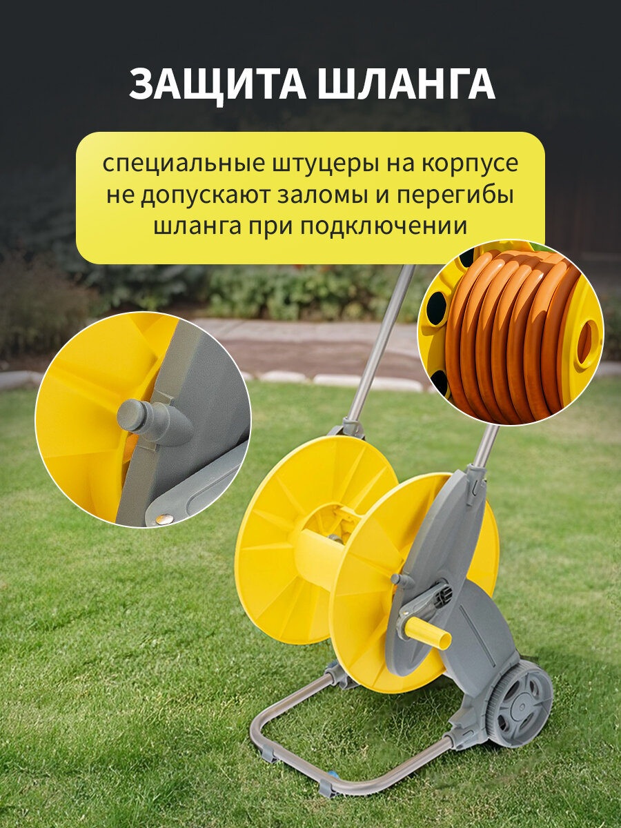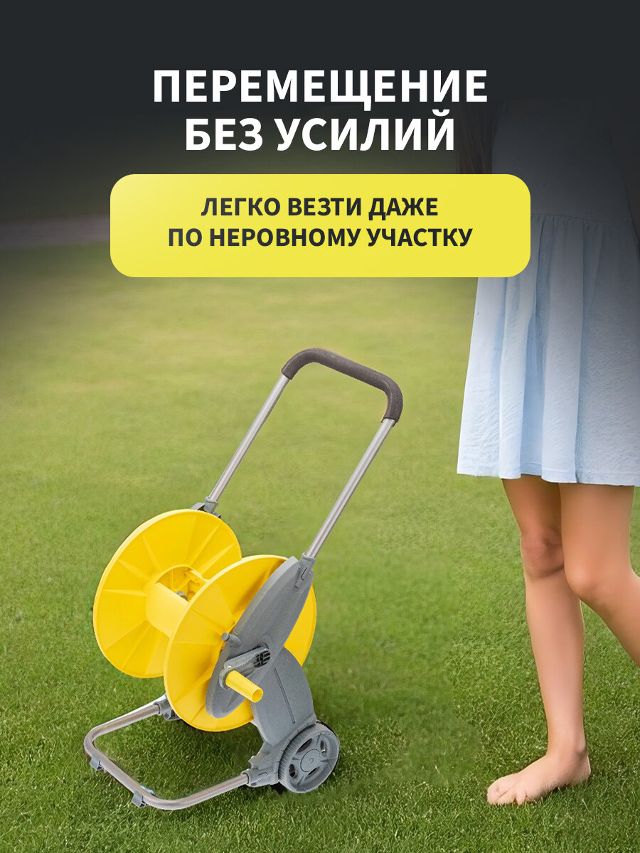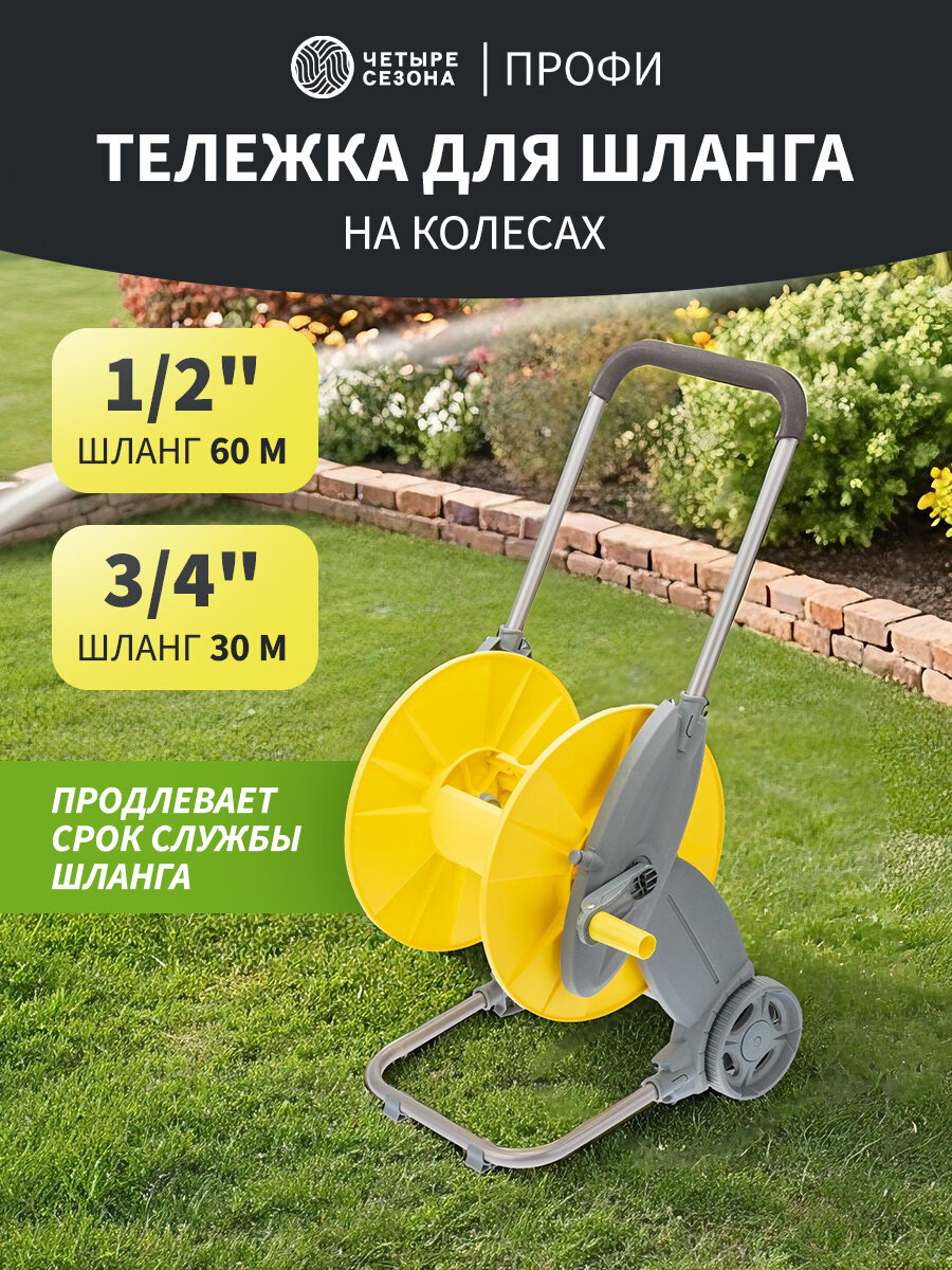 Катушка на колесах дачная для полива, катушка для шланга 1/2" 60 м или 3/4" 30 м для дачи ЧЕТЫРЕ СЕЗОНА