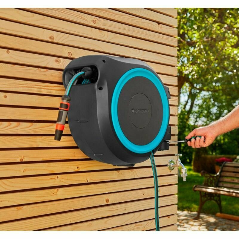 Катушка со шлангом настенная автоматическая Gardena RollUp M 20м интересное: