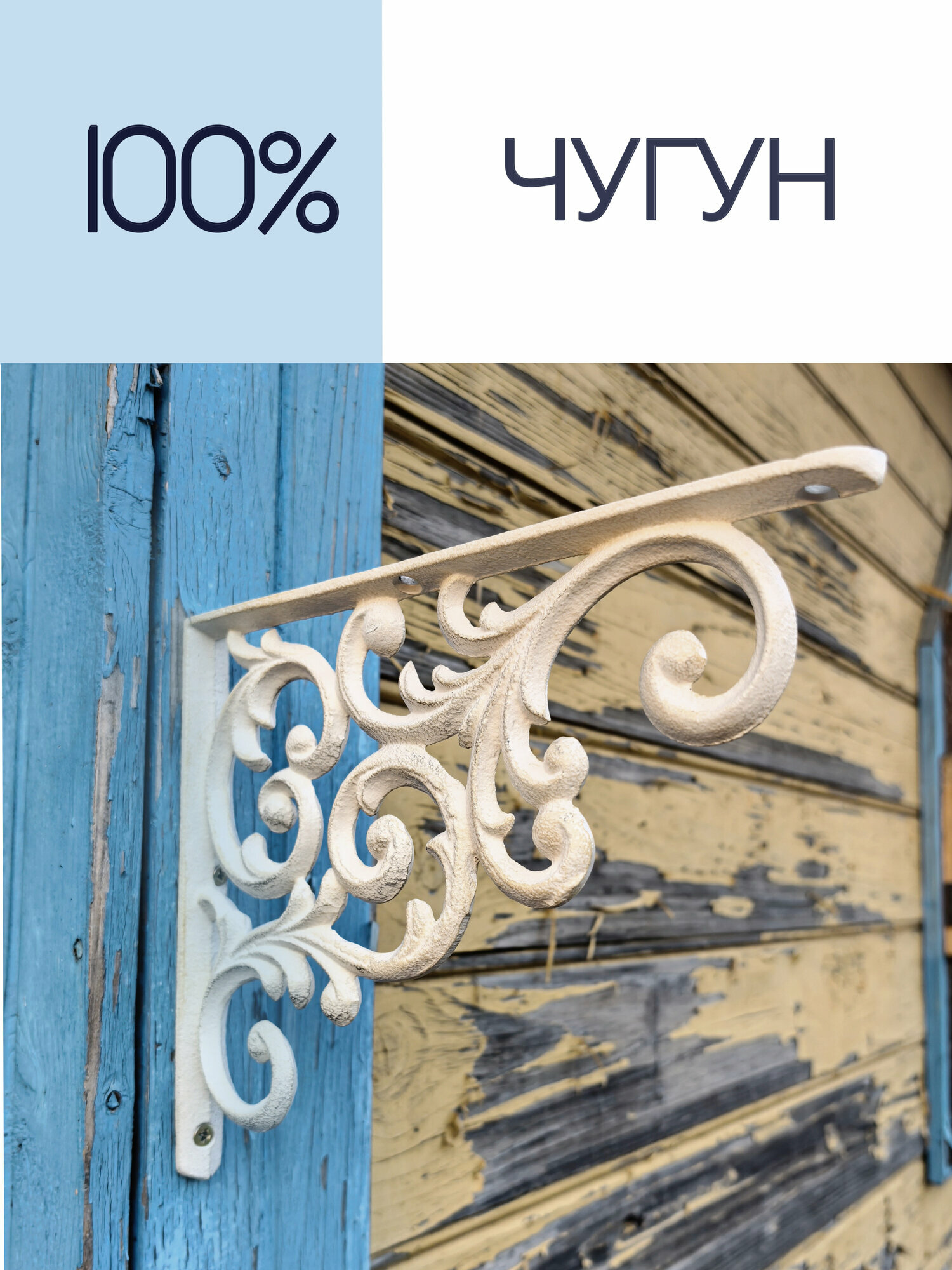 Кронштейн чугун для полки и кашпо винтажный белый интересное: