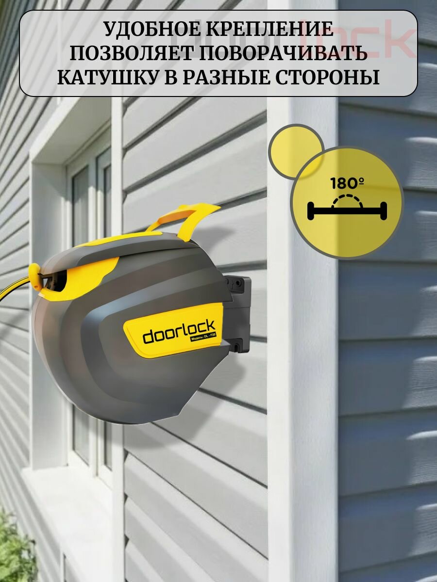 Катушка со шлангом автоматическая DOORLOCK DL-F30, шланг 1/2" длиной 30м, с функцией замедления, насадка-распылитель в комплекте интересное: