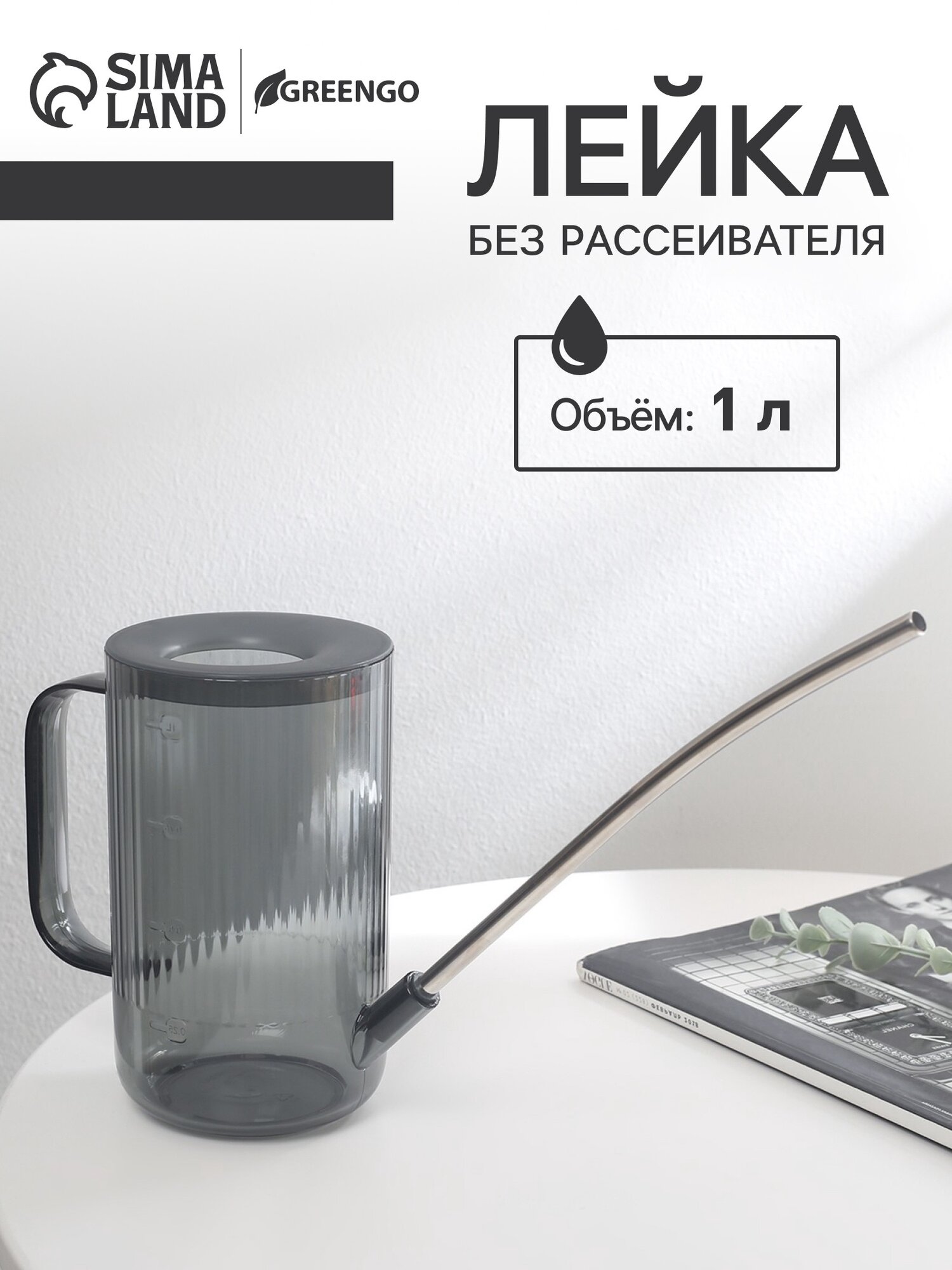 Лейка для комнатных растений, 1 л, без рассеивателя, серая, Greengo интересное: