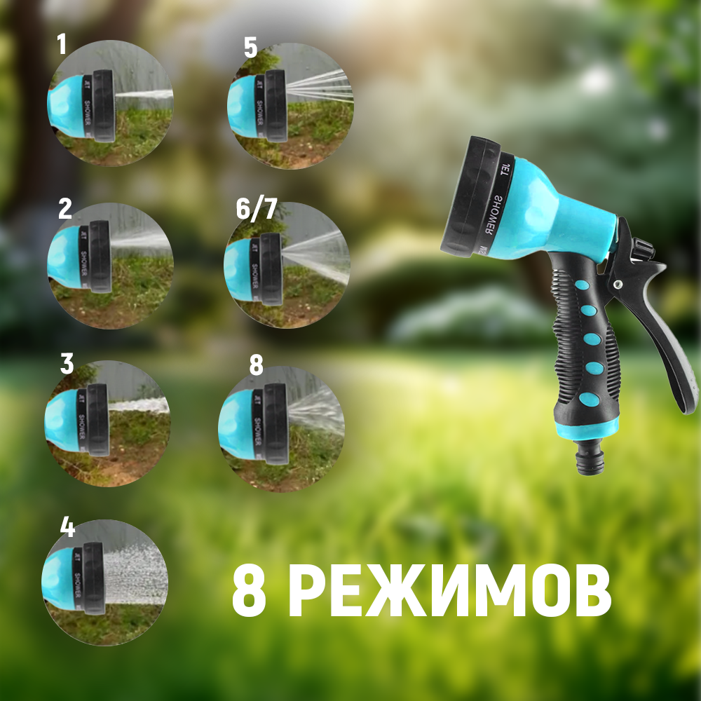 Пистолет распылитель для полива огорода / Насадка лейка на шланг садовая / Лейка садовая 8 режимов / Распылитель садовый на шланг интересное: