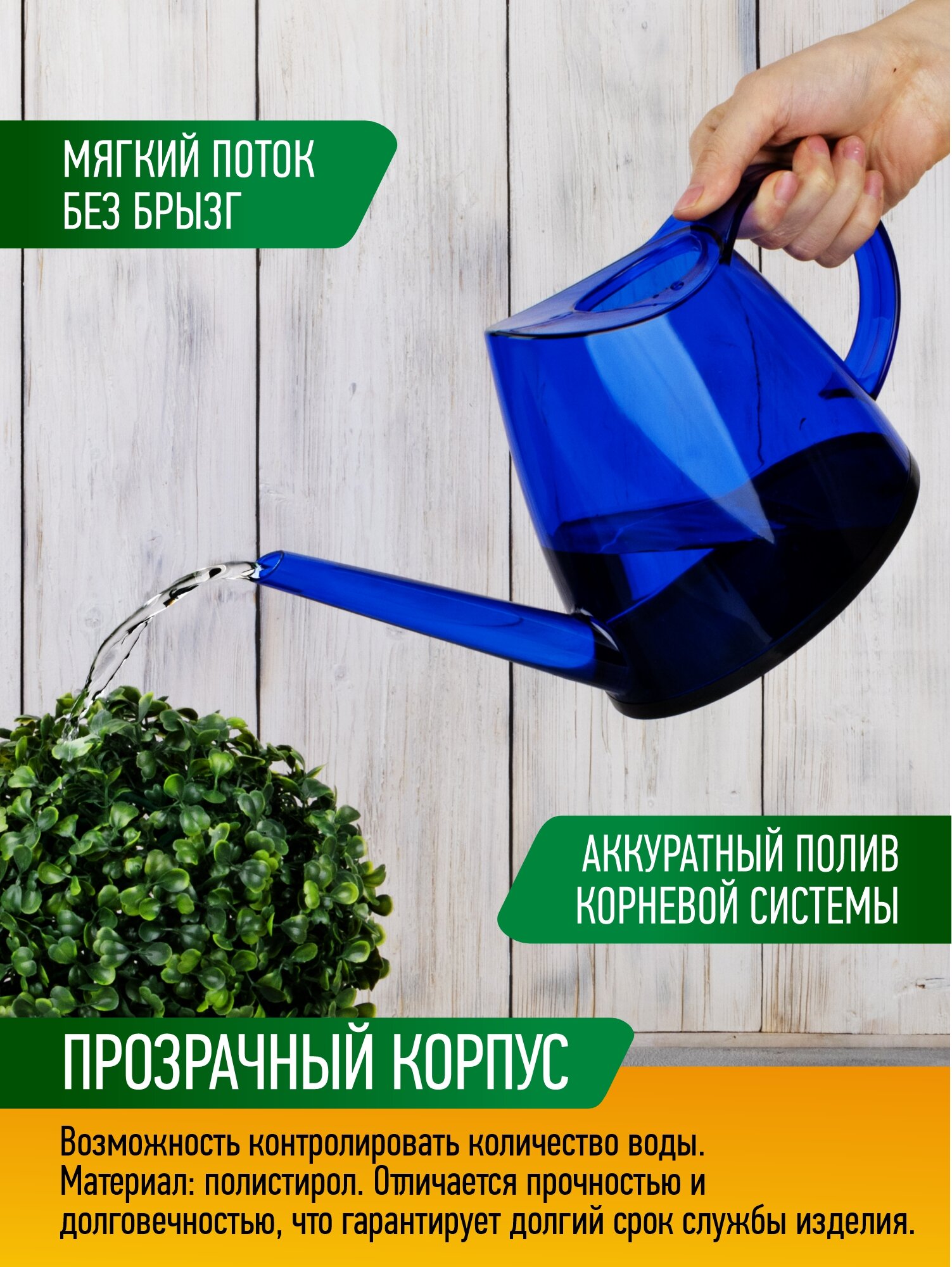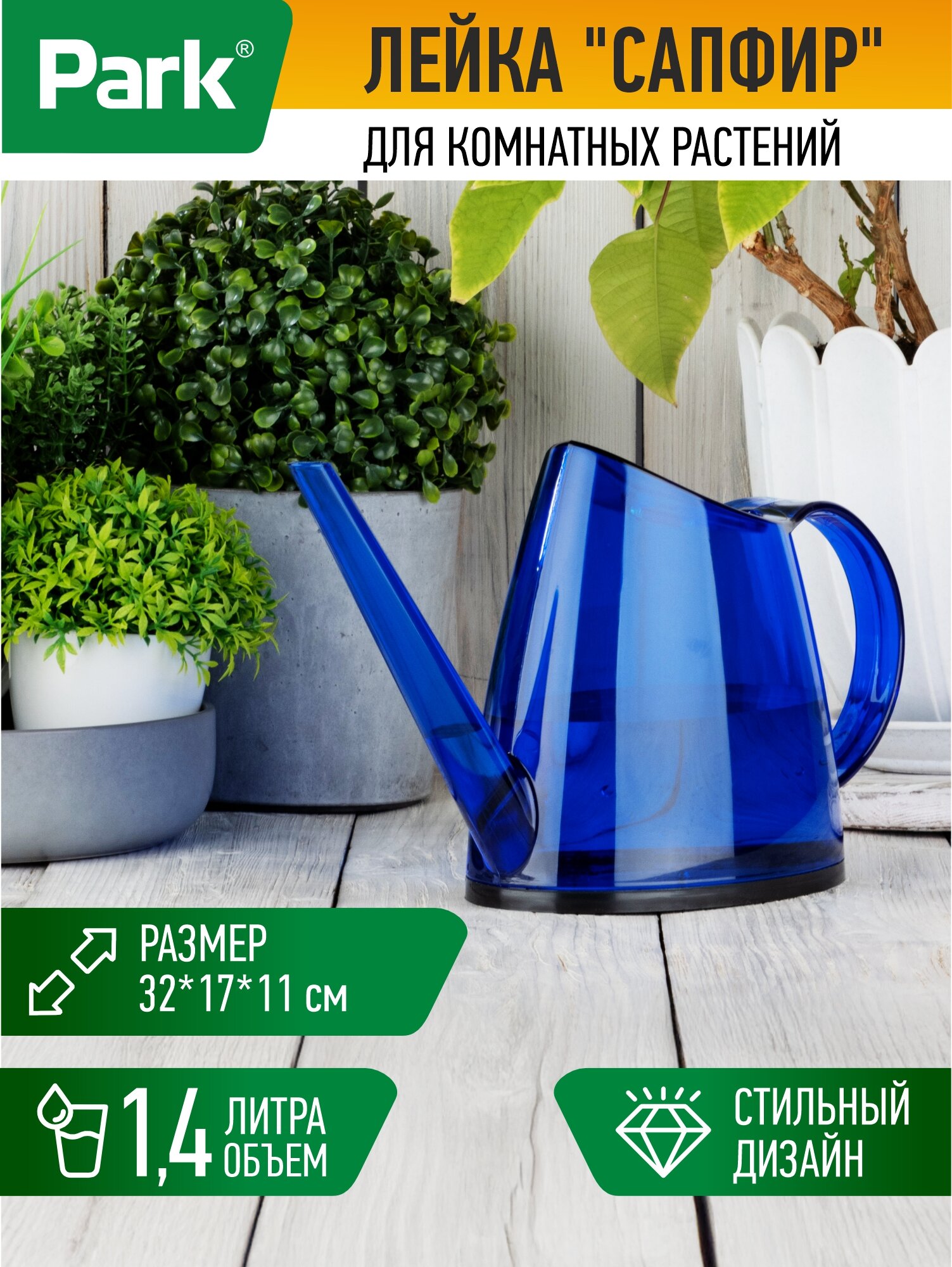 Лейка пластиковая прозрачная Park "Сапфир" (271952), объем: 1.4 л интересное: