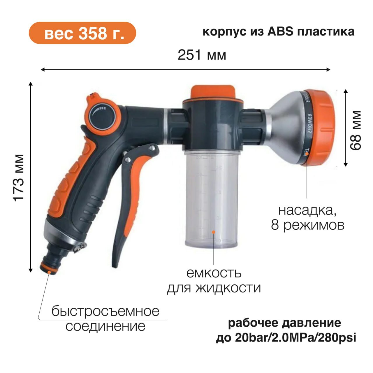 Пистолет поливочный, с емкостью для удобрения, шампуня, с регулятором, прорезиненный, 358 гр интересное: