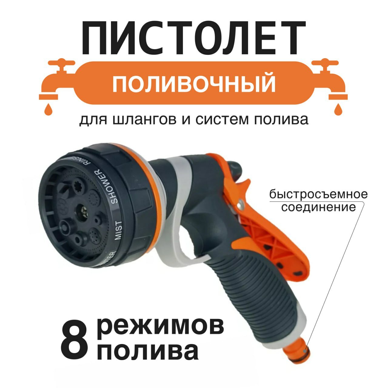 Пистолет поливочный, с коннектором, с регулятором, оранжевый